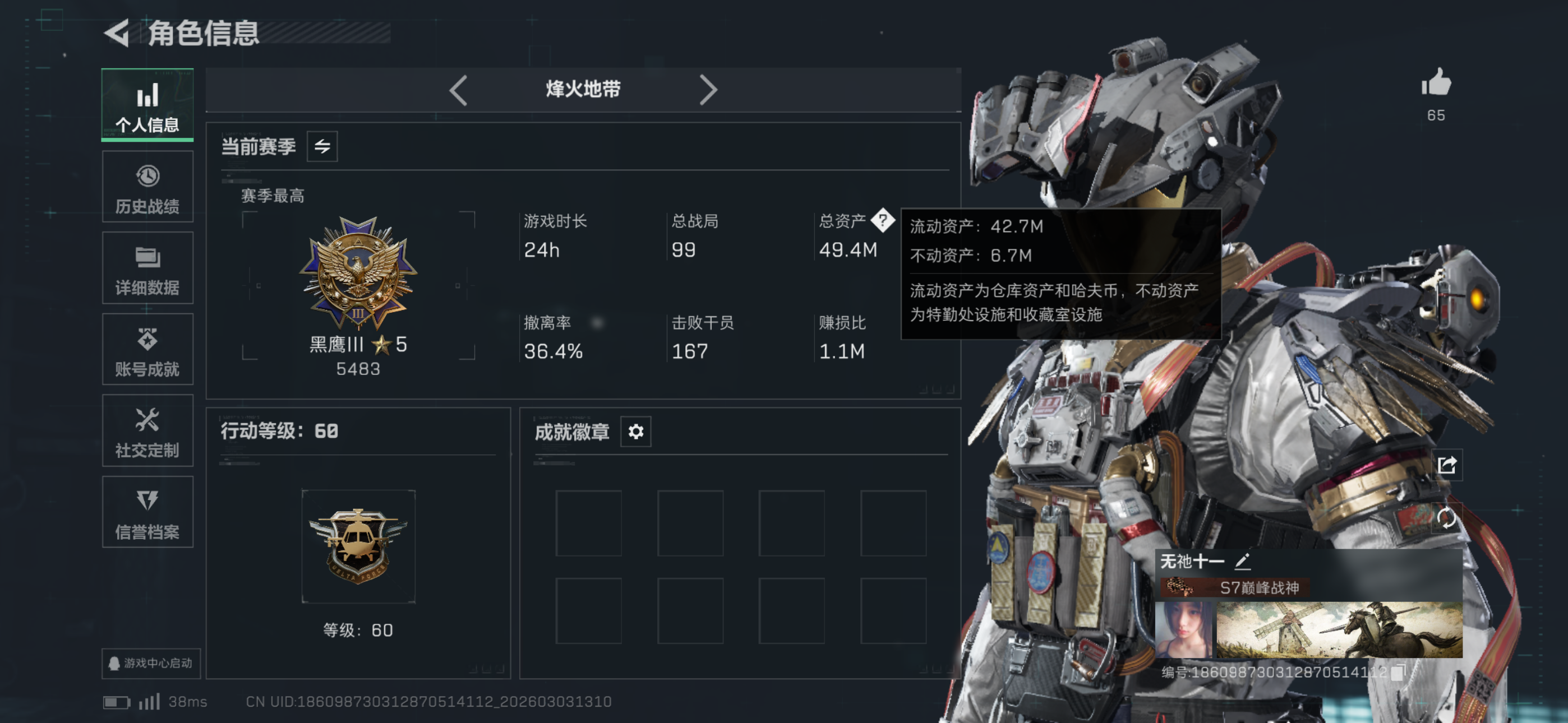 244m总资产-46221k哈伏币-60烽火等级-黑鹰-