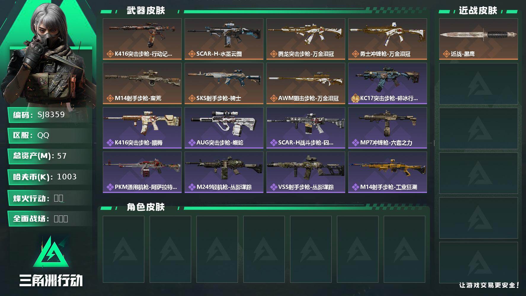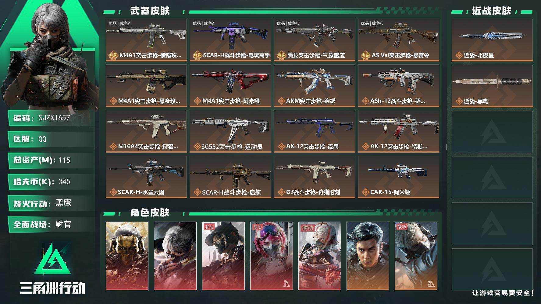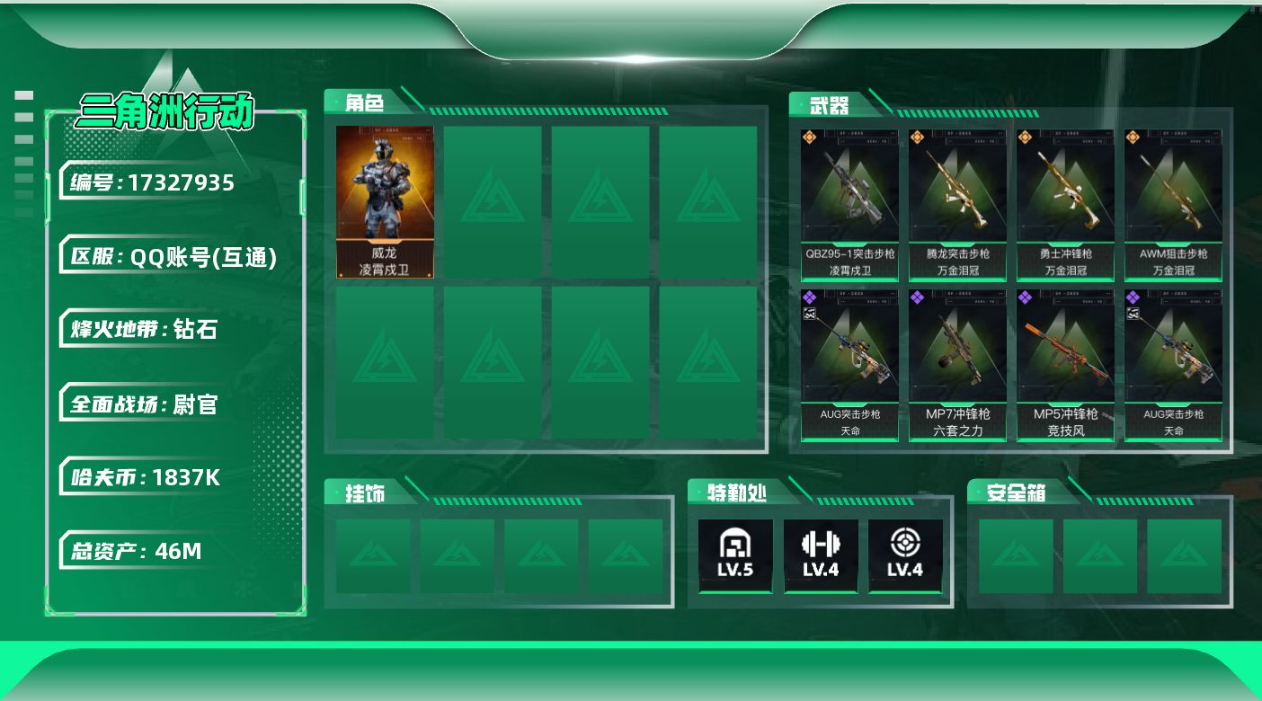 总资产:7.3M 1干员外观 5传说枪械 哈夫币:46.876K