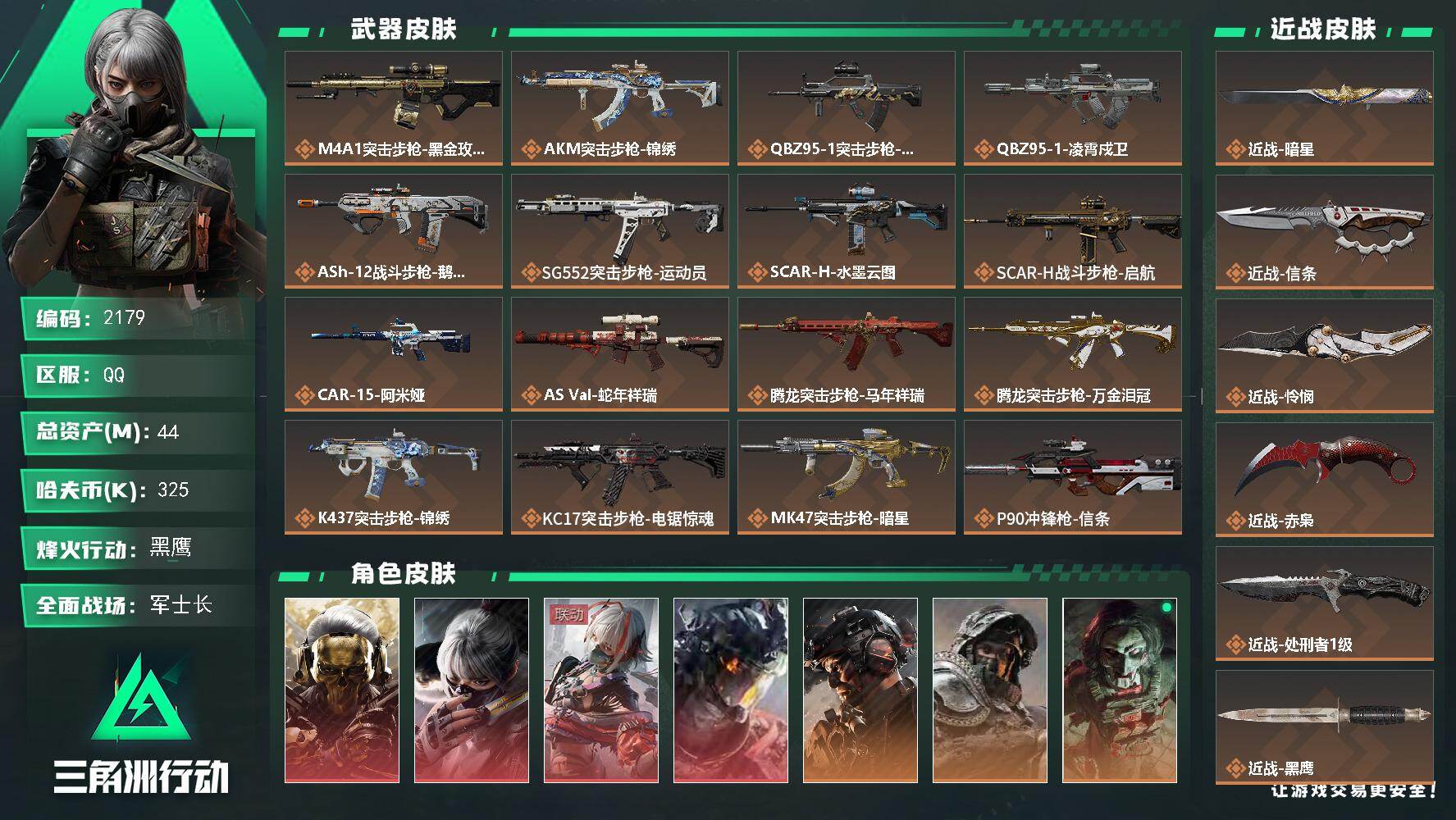 【特价出售/店主推荐】76m总资产-27620k哈伏币-60烽火等级-黑鹰-1