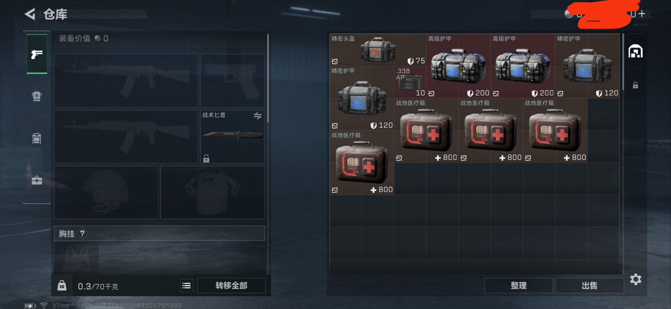 367m仓库 181m纯币 满体满负 3x3保险 70发AP 34m收藏室 仓库多红和装备 可二次
