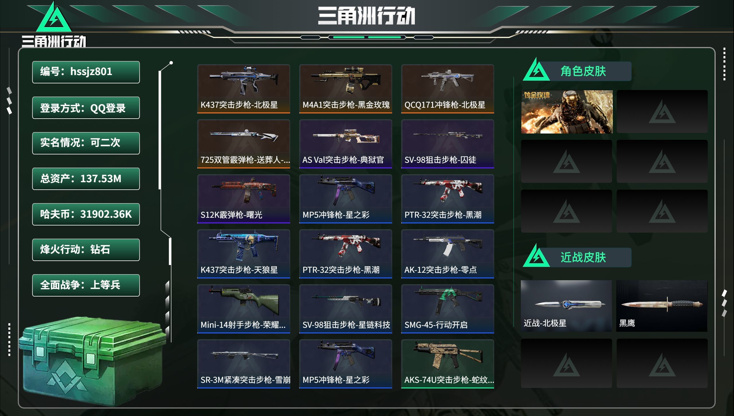 D10872/QQ区/可二次/钱包无法注销/【总资产:141.7M+哈夫币:1389W+近战武器-北
