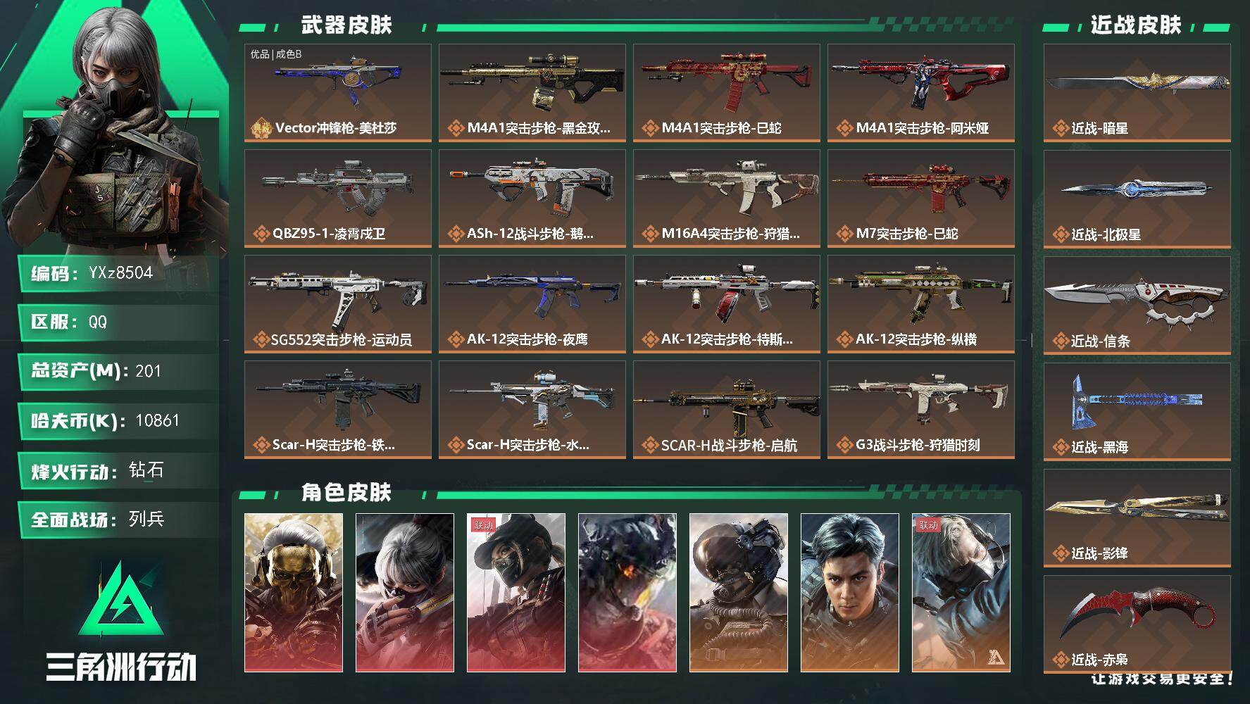 总资产:418M 5干员外观 3近战传说 24传说枪械