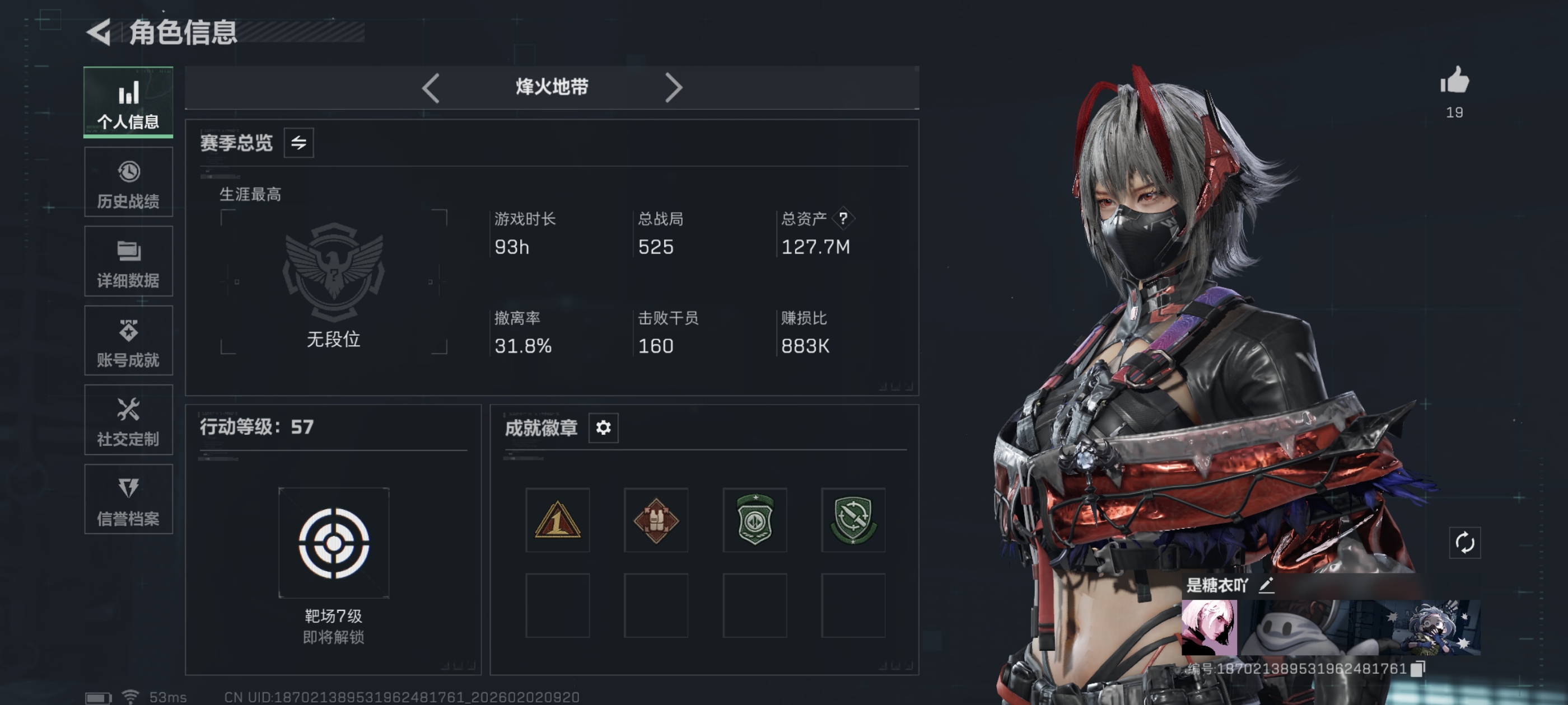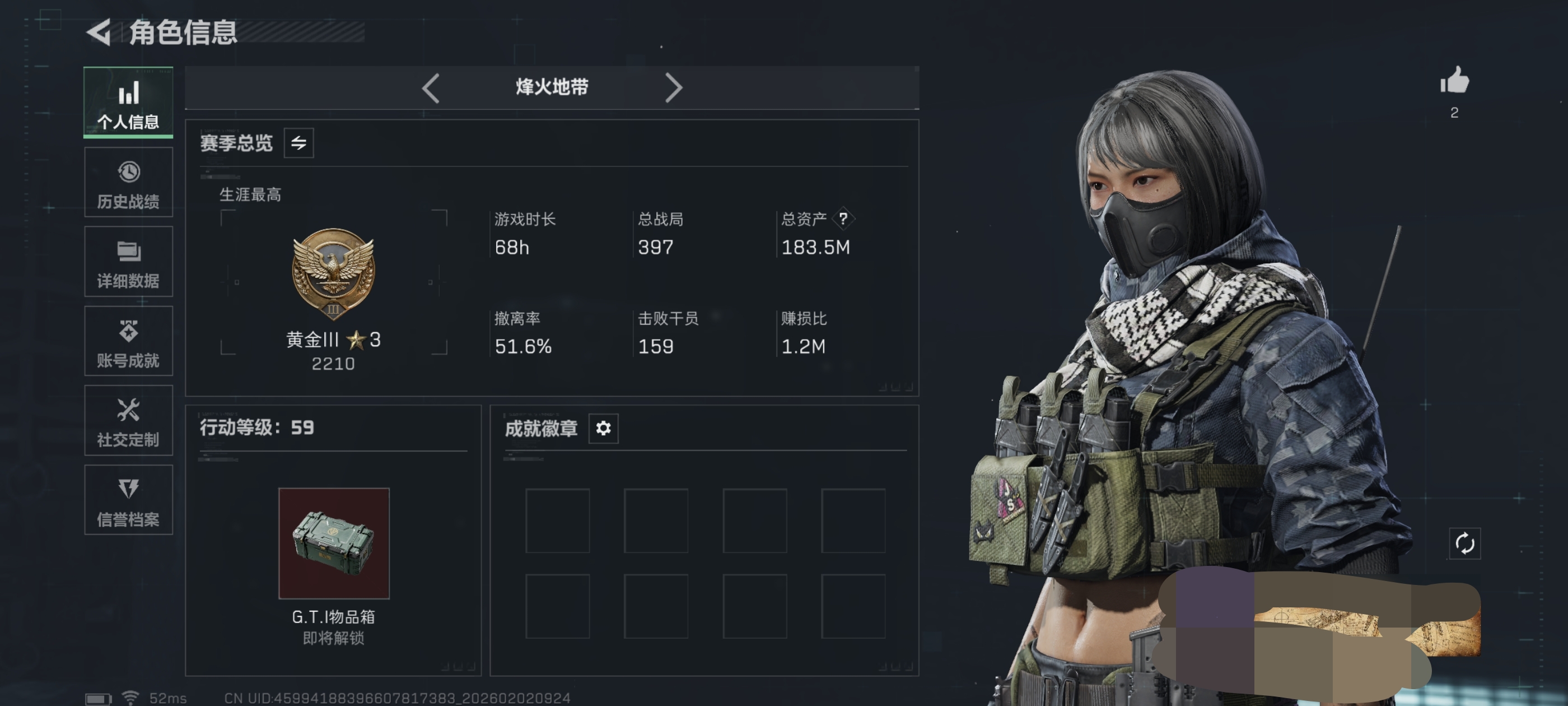 51m总资产-1714k哈伏币-60烽火等级-铂金-28战场等级-上等兵【干