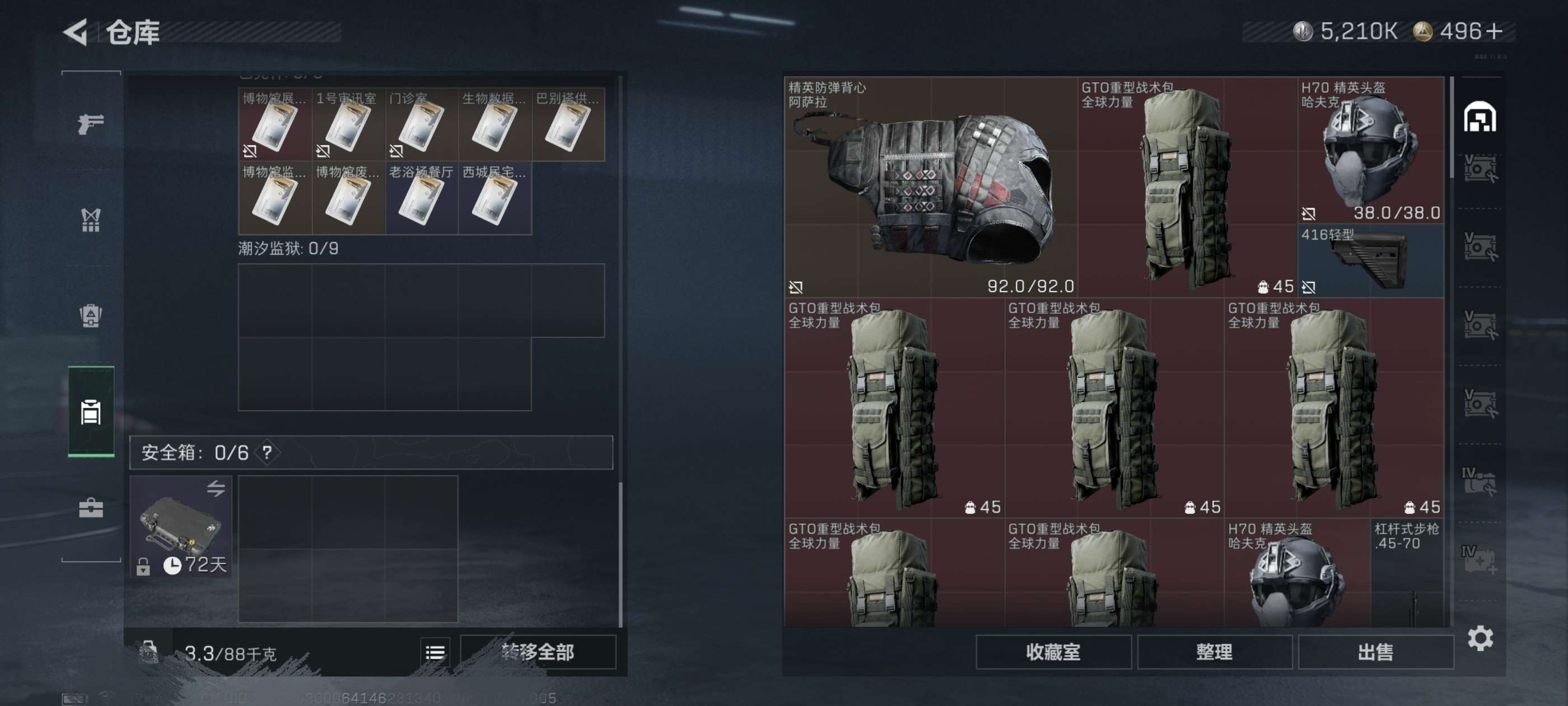 373m仓库 181m纯币 满体满负 70发AP 34m收藏室 仓库多红和装备 可二次