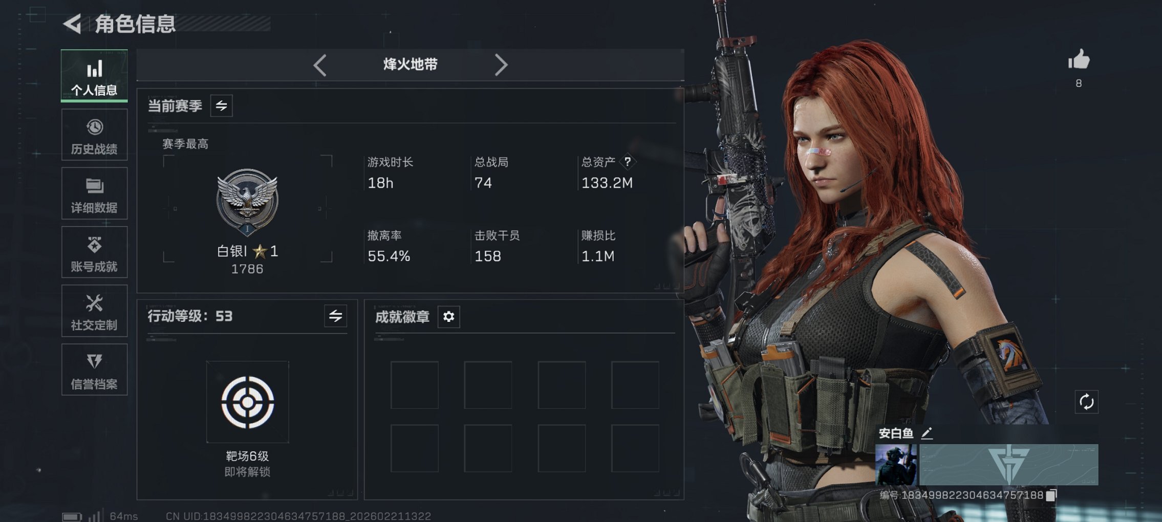 348m总资产-12743k哈夫币-60烽火等级-黑鹰-20战场等级-列兵【
