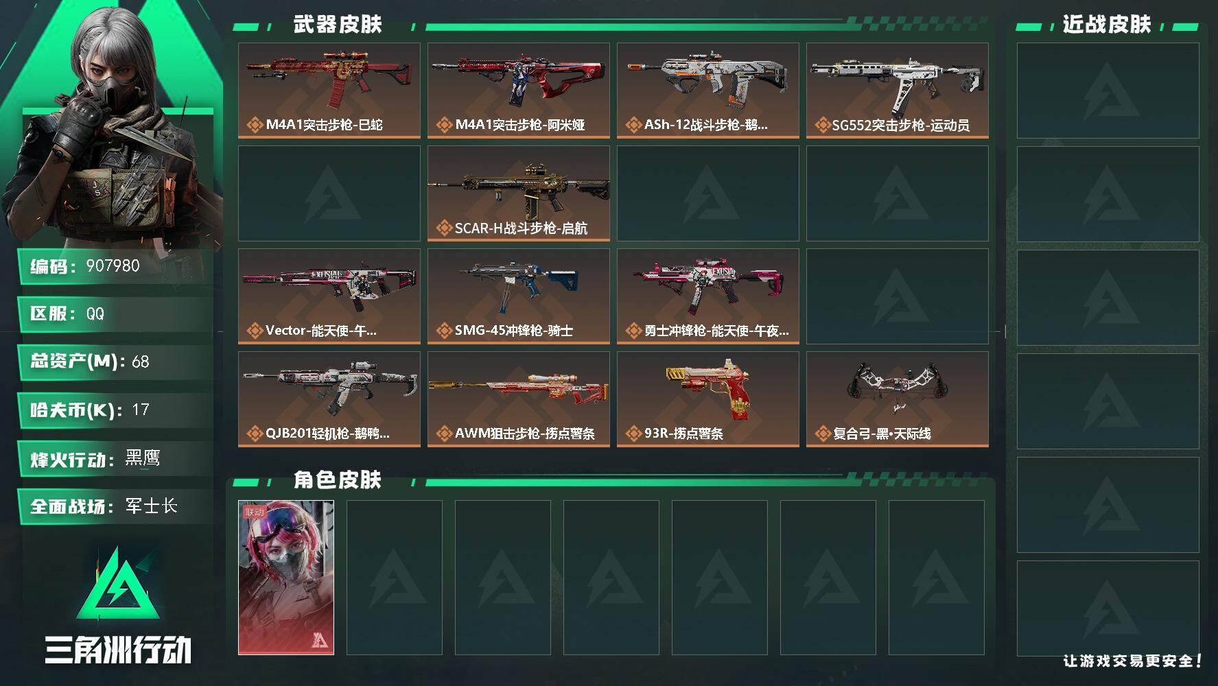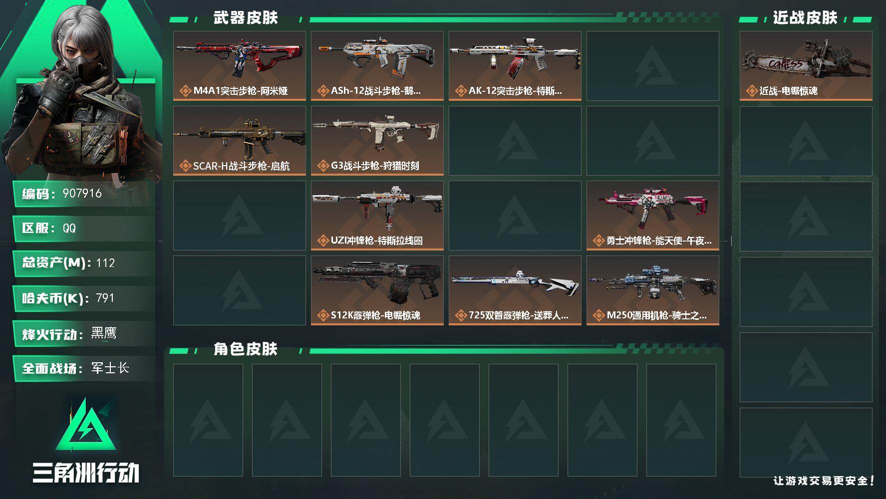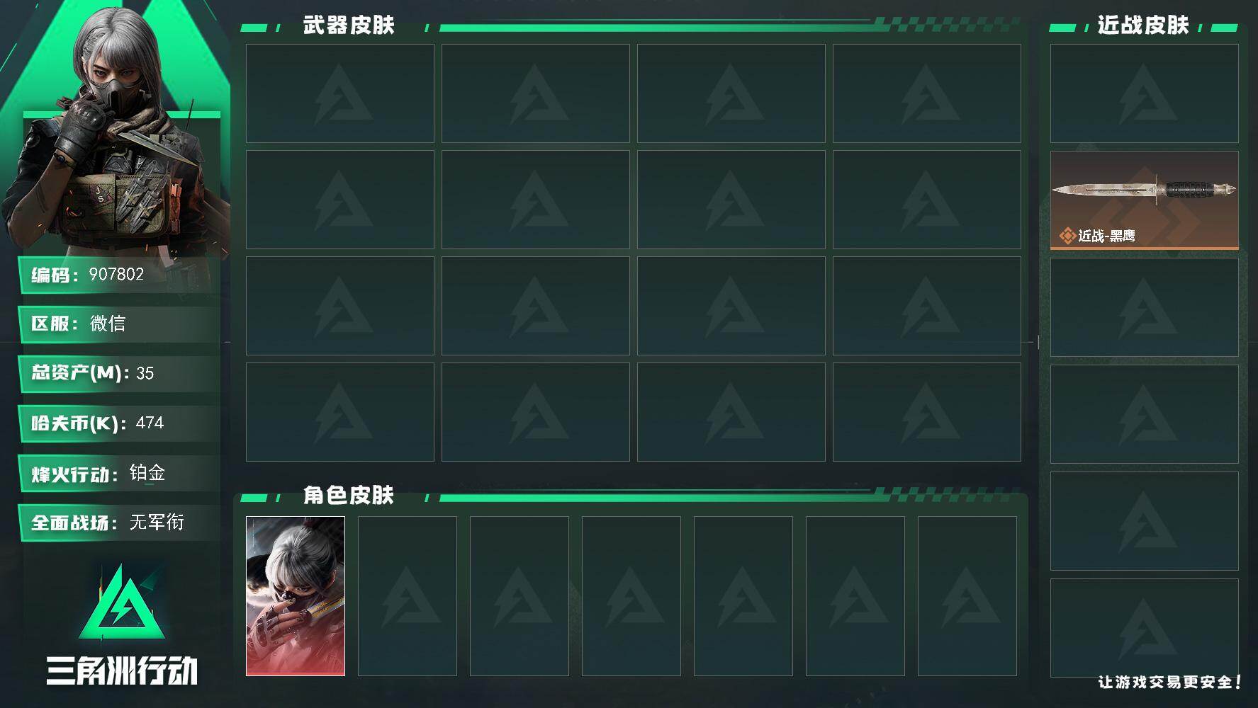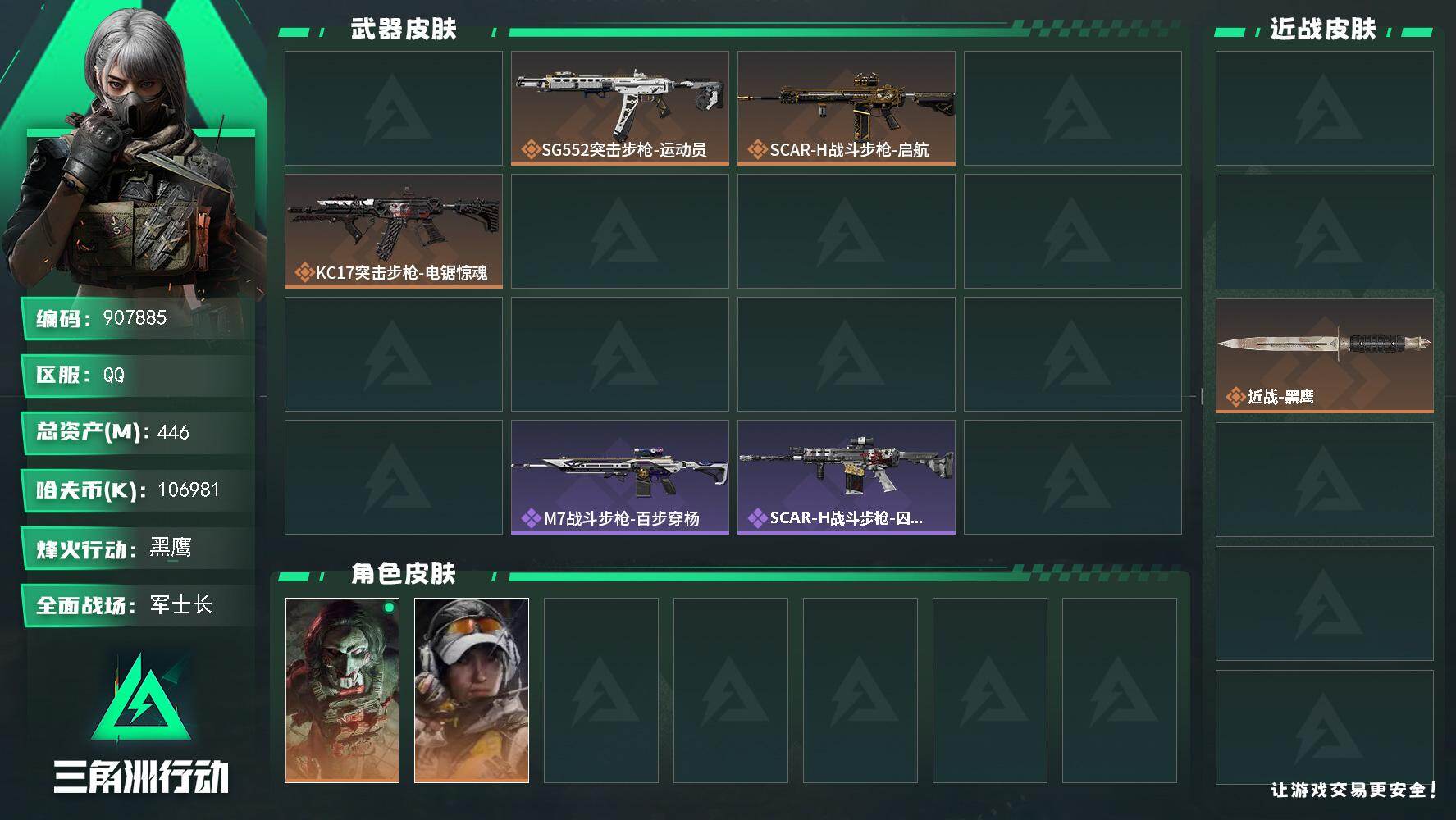6m总资产-15k哈夫币-60烽火等级-黑鹰-1战场等级-无军衔【近战皮肤】