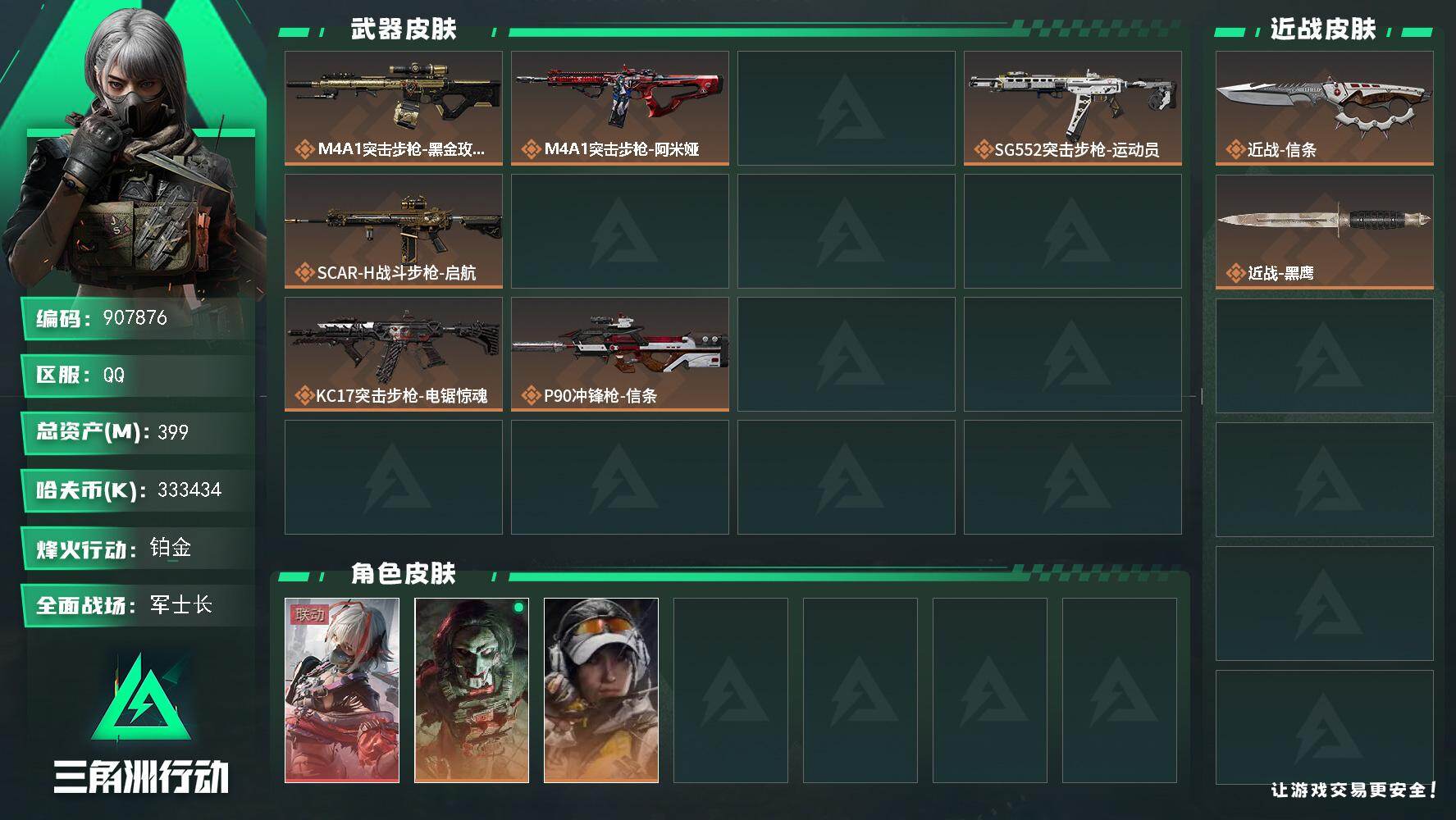 399m总资产-333434k哈夫币-60烽火等级-铂金-43战场等级-军士长