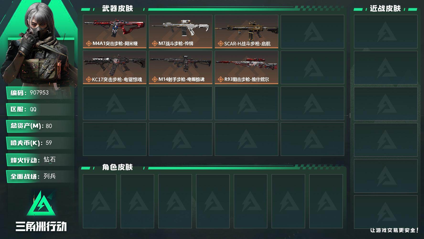 总资产:80.5M 2干员外观 13传说枪械 哈夫币:5