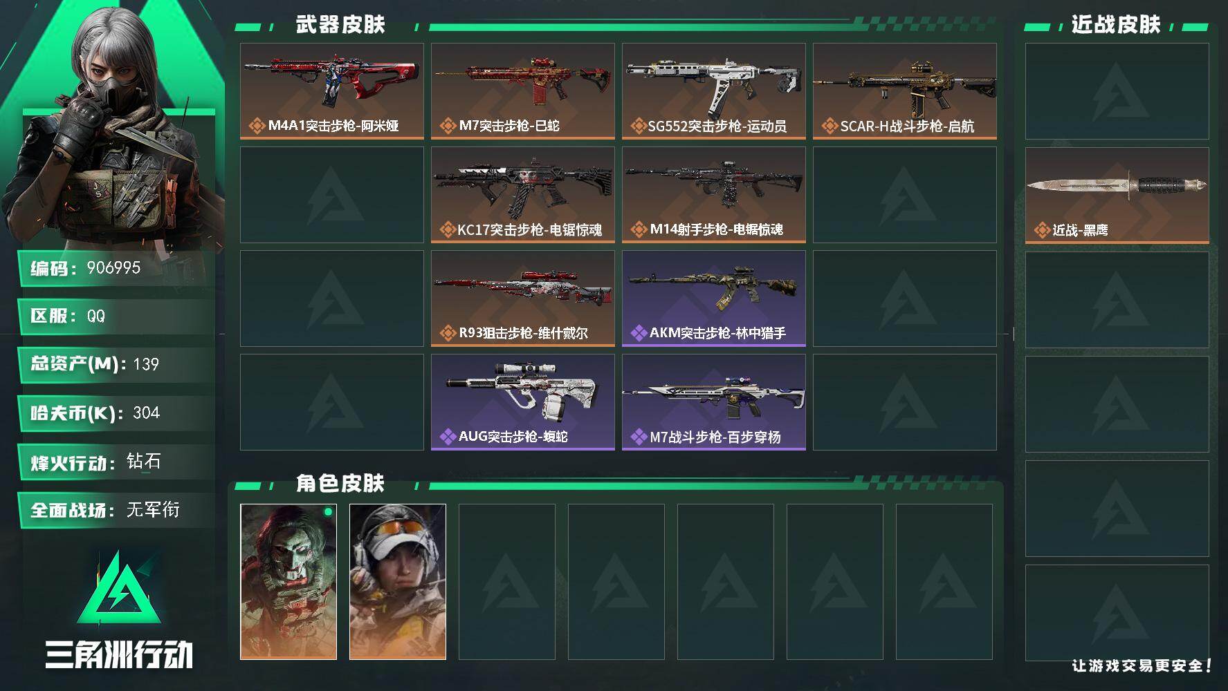 {特价出售}等级:60总资产139.3m 纯币304788 刀皮 处刑者 特勤
