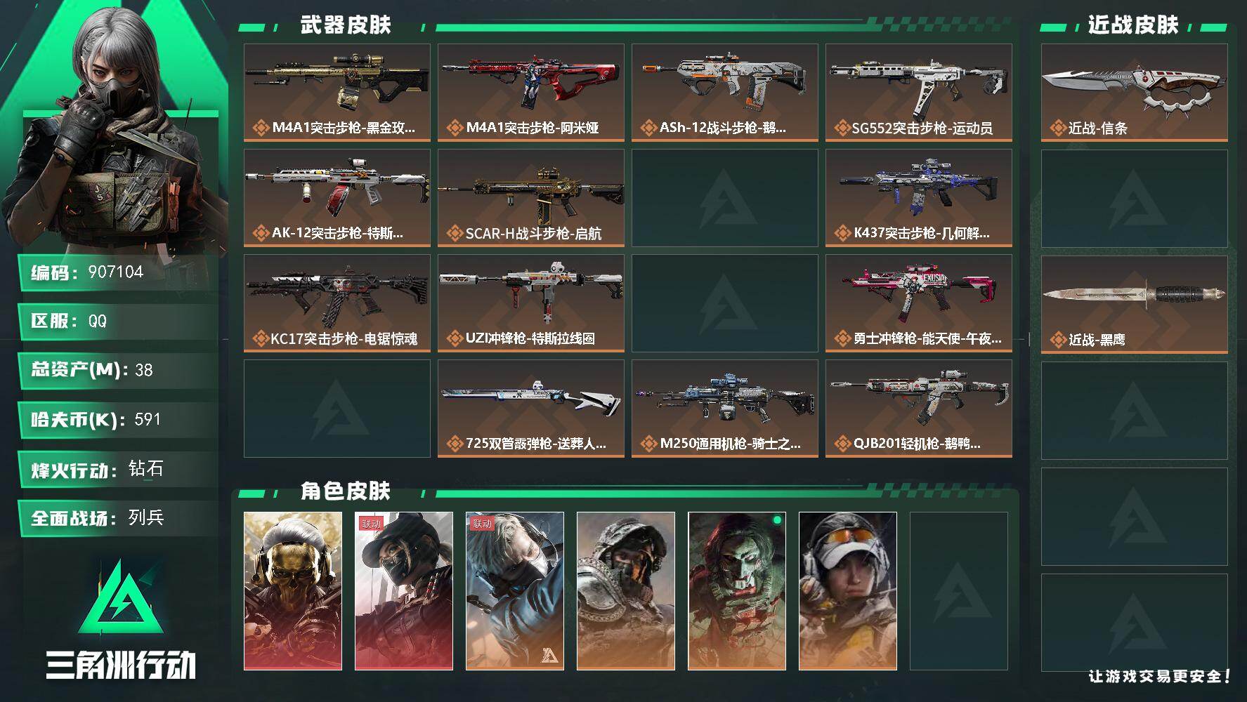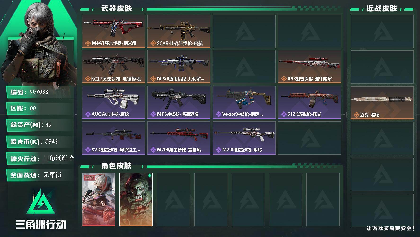 总资产5m 等级22 暗星捆绑包 烽火地带段位: 青铜 全面