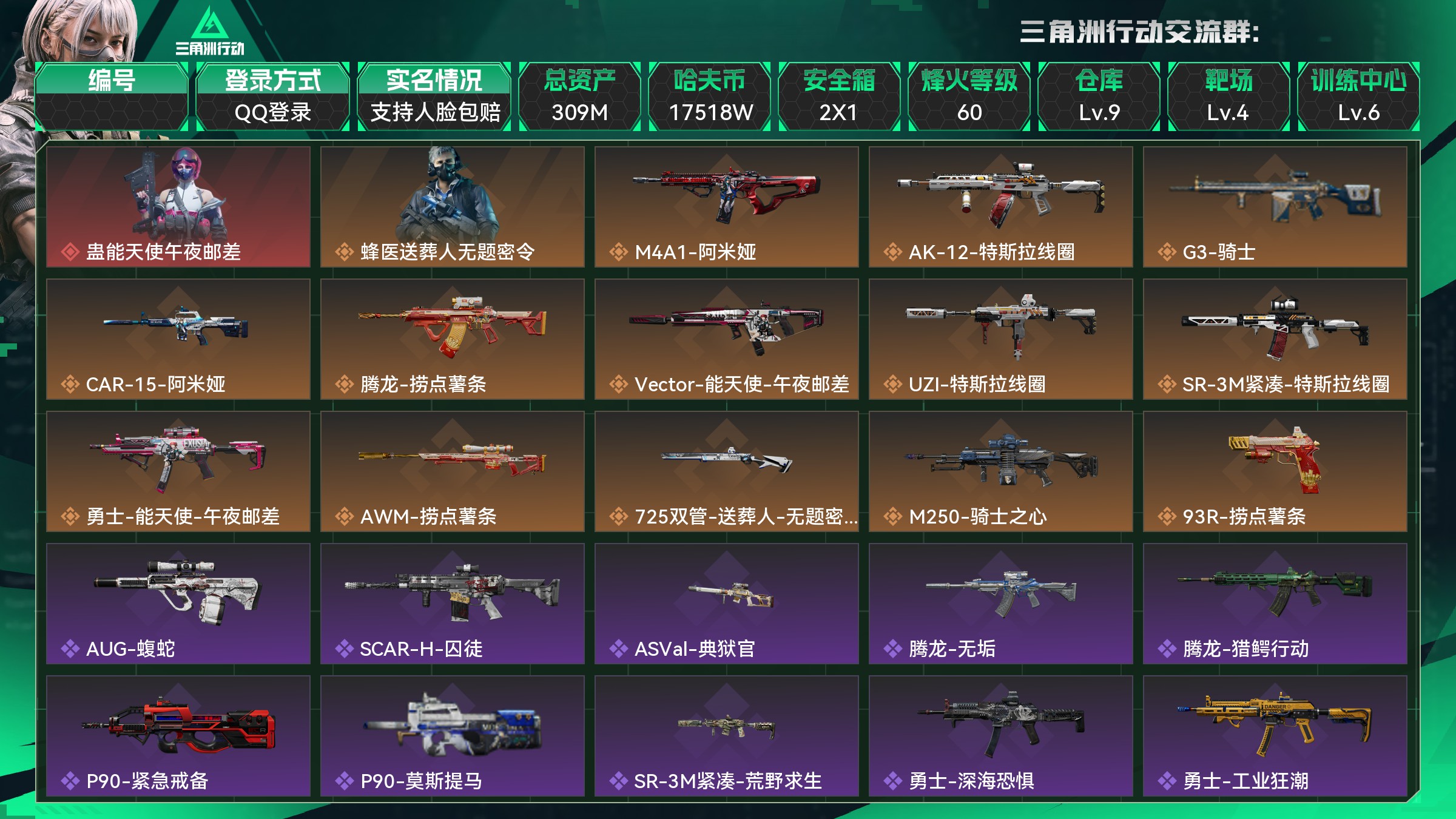 总资产:309M,哈夫币:17518W,武器皮肤106;