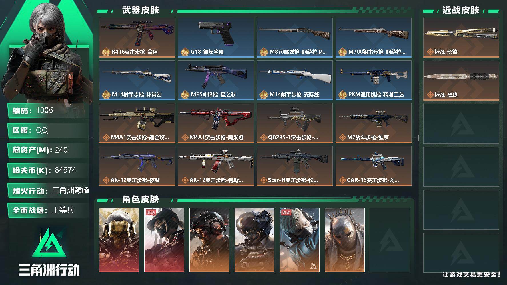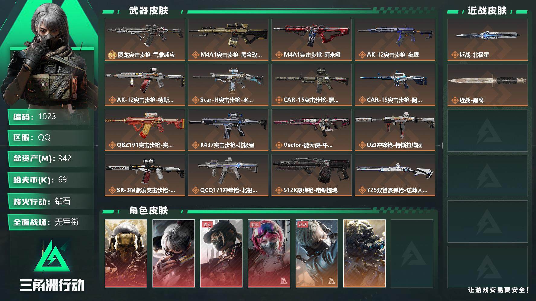 【962】69650三角币 总资产:64.2M,哈夫币:186W,武器皮肤11