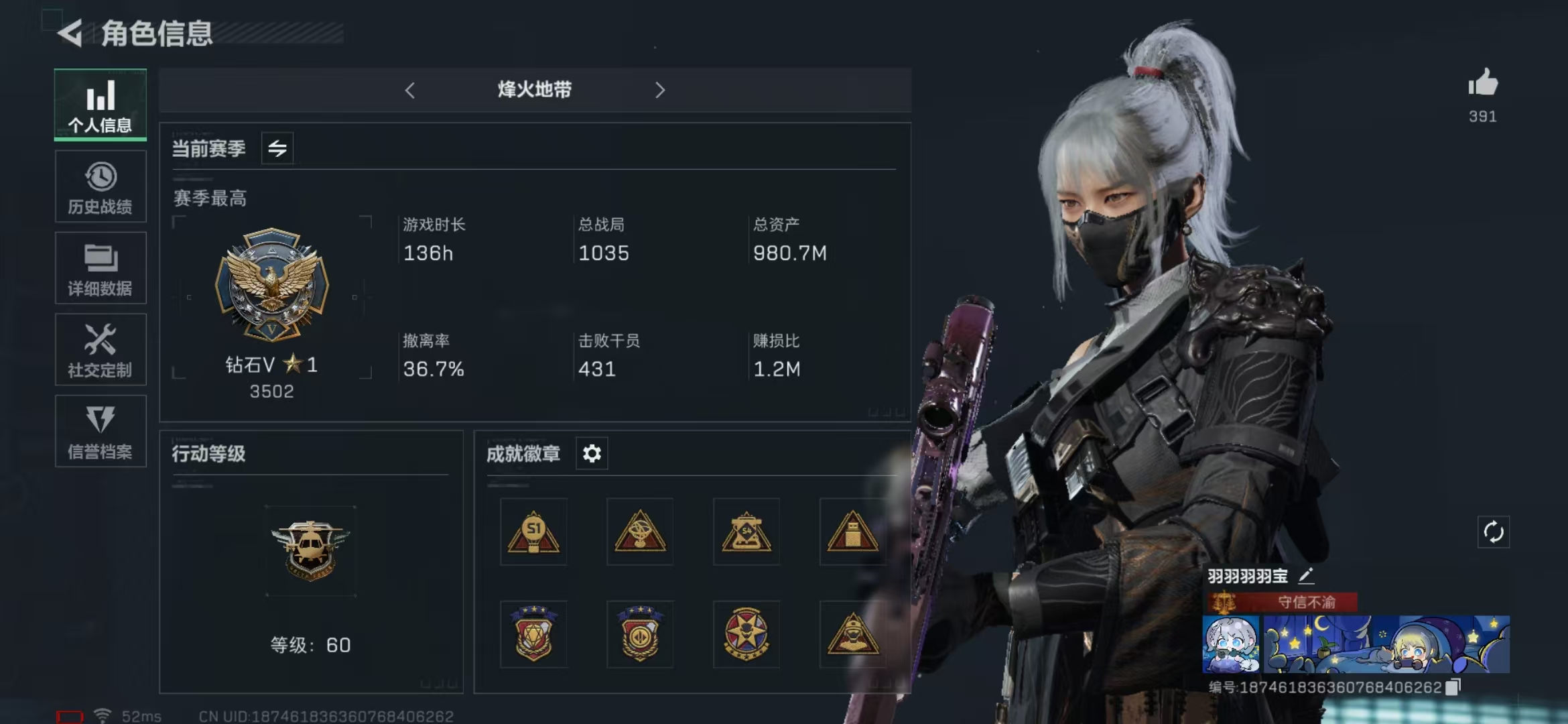安卓微信 哈夫币207M,等级60,仓库6套3套(甲+盔))