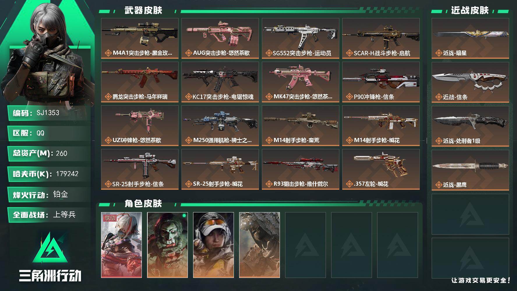 【SJ1353】260m总资产-179242k哈伏币-60烽火等级-铂金-14