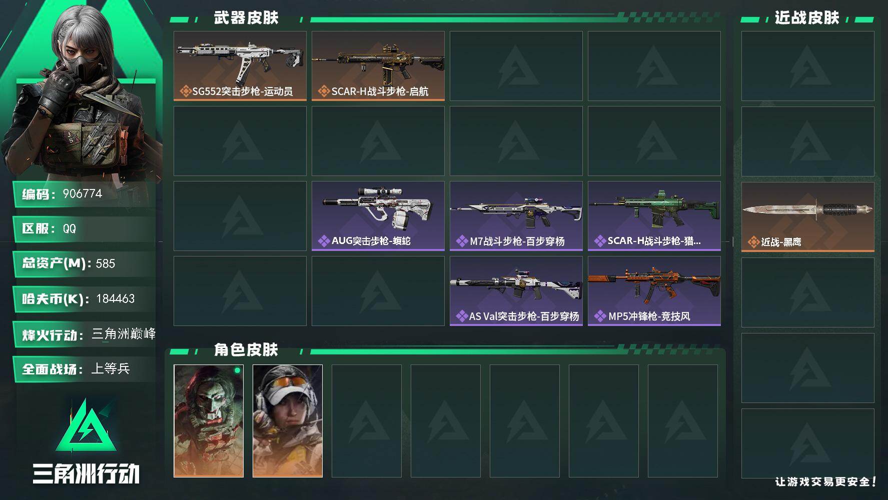17m总资产-85k哈伏币-60烽火等级-黑鹰-21战场等级-军士长【干员外