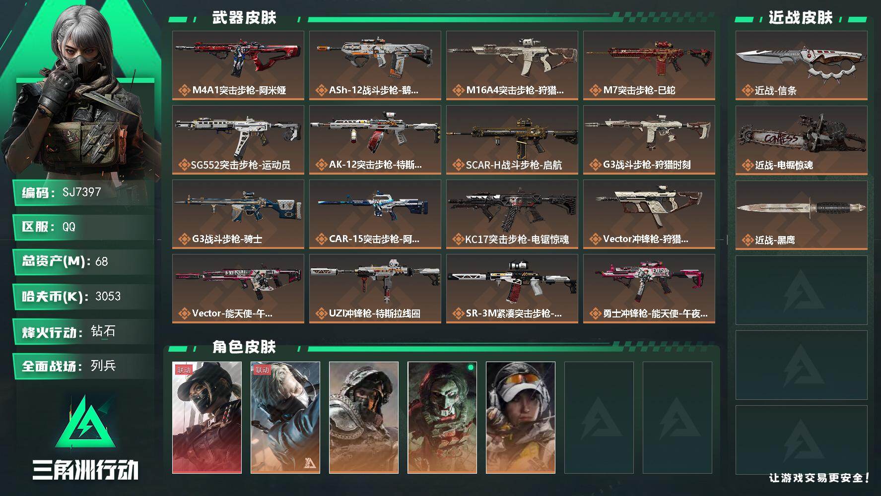 总资产(M):68M/哈夫币(K):3053K