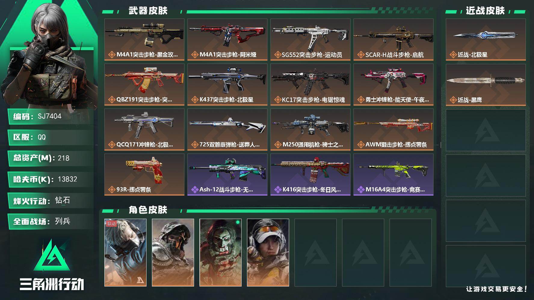 总资产(M):218M/哈夫币(K):13832K