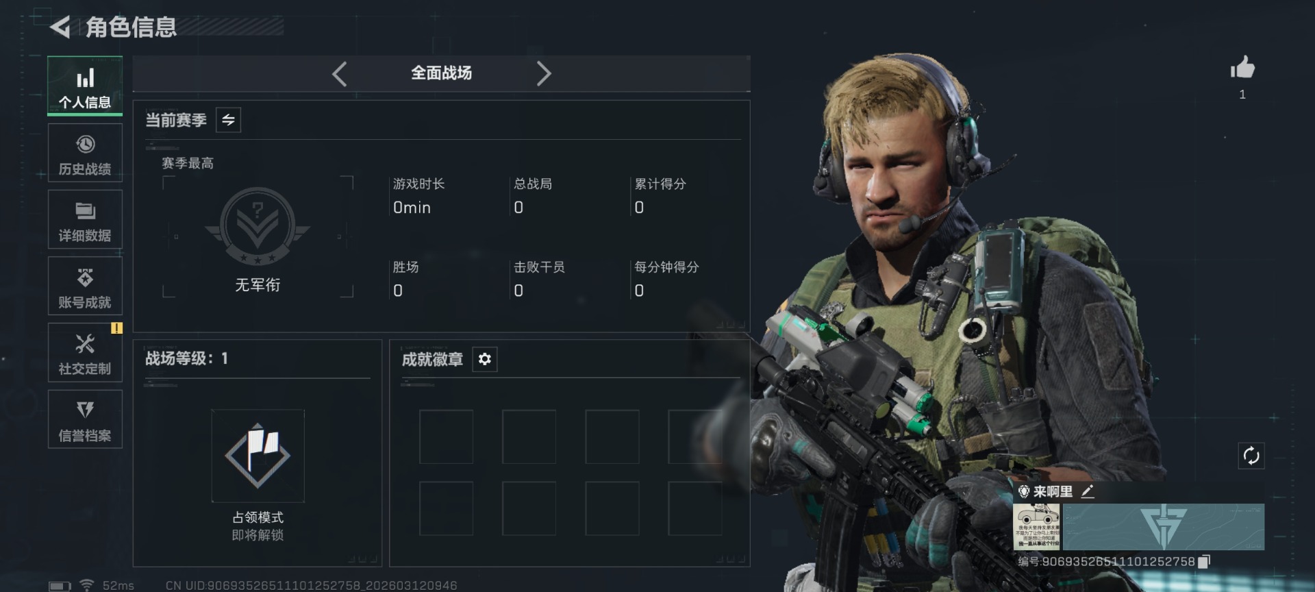 278m总资产-35420k哈伏币-60烽火等级-黄金-29战场等级-上等兵