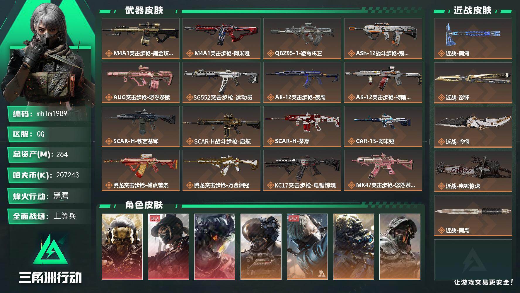 264m总资产-207243k哈伏币-60烽火等级-黑鹰-43战场等级-上等兵