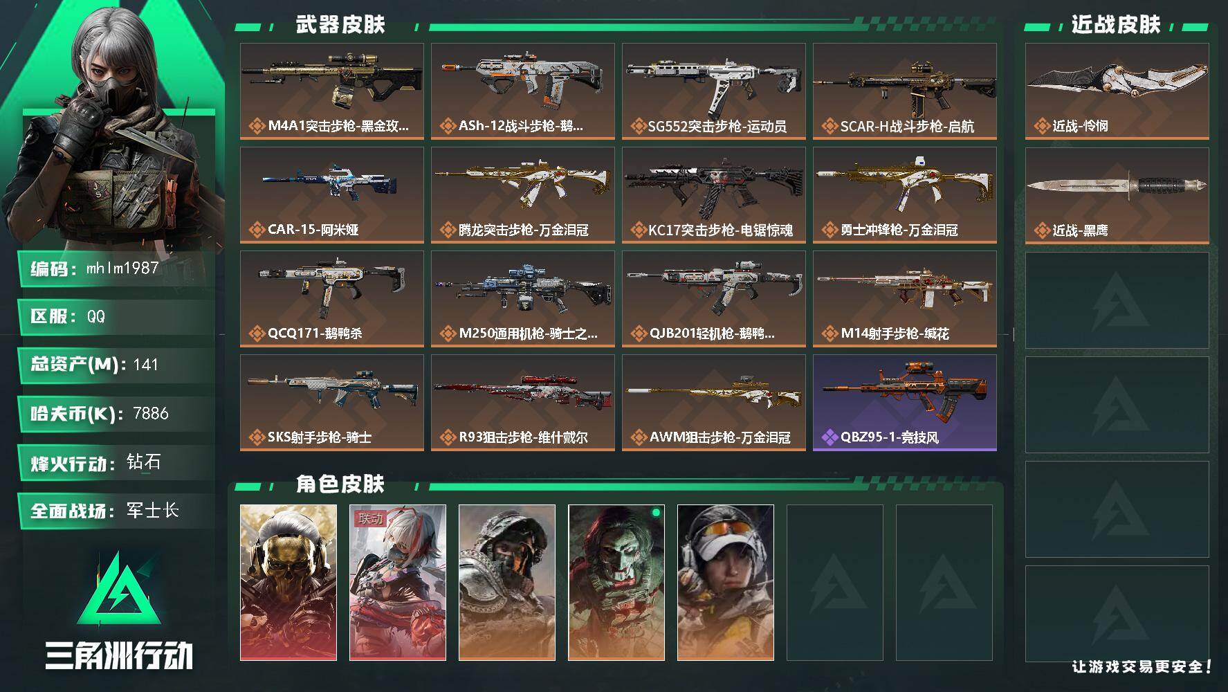 141m总资产-7886k哈伏币-60烽火等级-钻石-40战场等级-军士长【