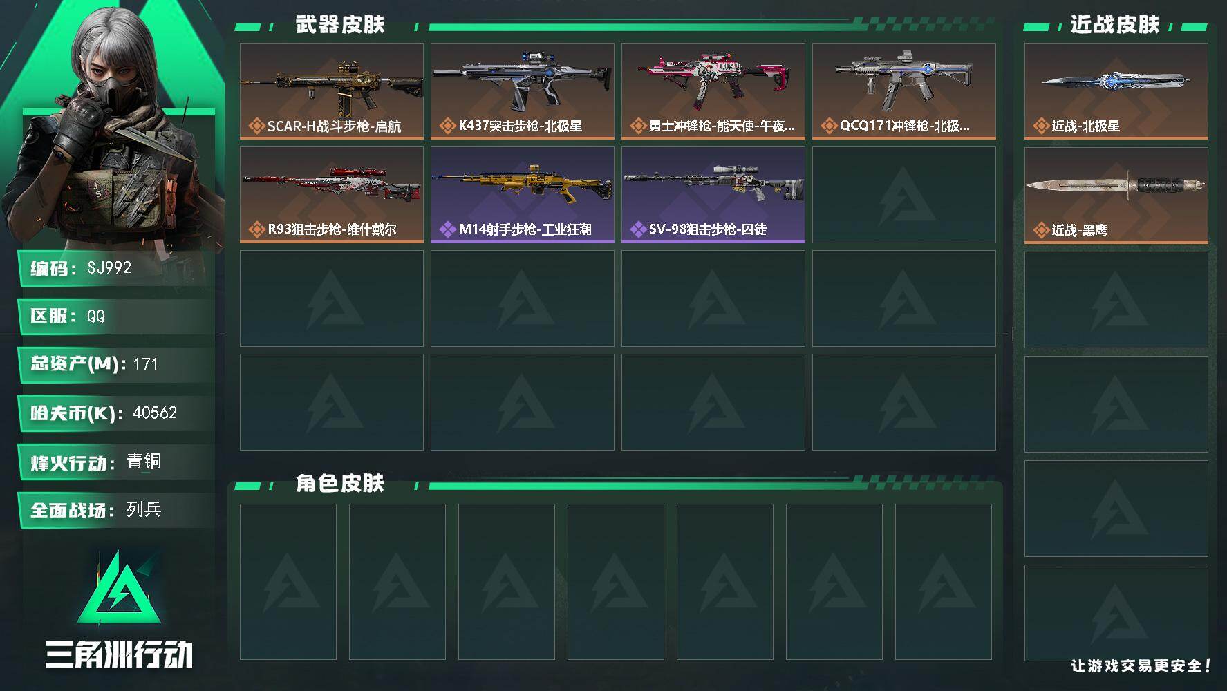 【SJ992】等级:60,总资产:171.7M,哈夫币:4138.6W,近战武