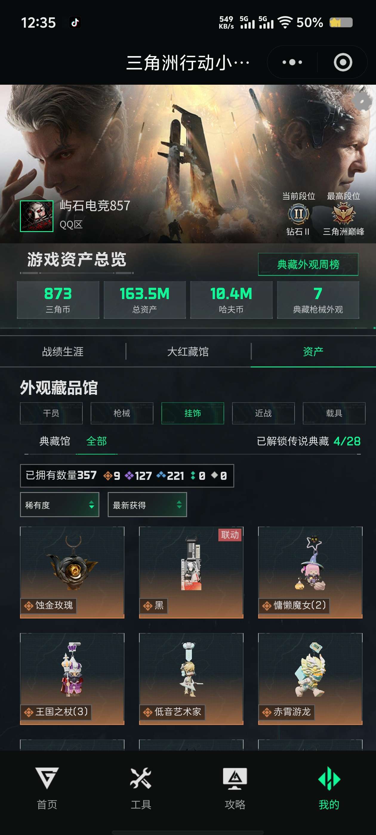 总资产(M):44M/哈夫币(K):10746K//传说枪皮数:6/全面战场等级:20_段位:上等兵/烽火地带等级:60_段位:白银
