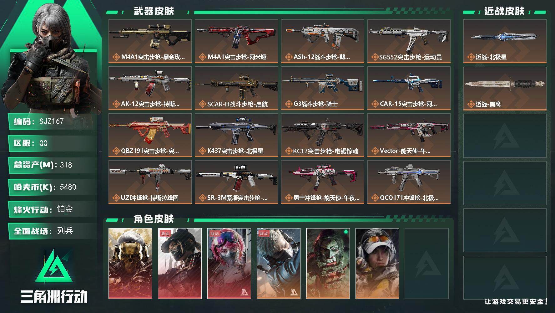 318m总资产-5480k哈伏币-60烽火等级-铂金-18战场等级-列兵【干