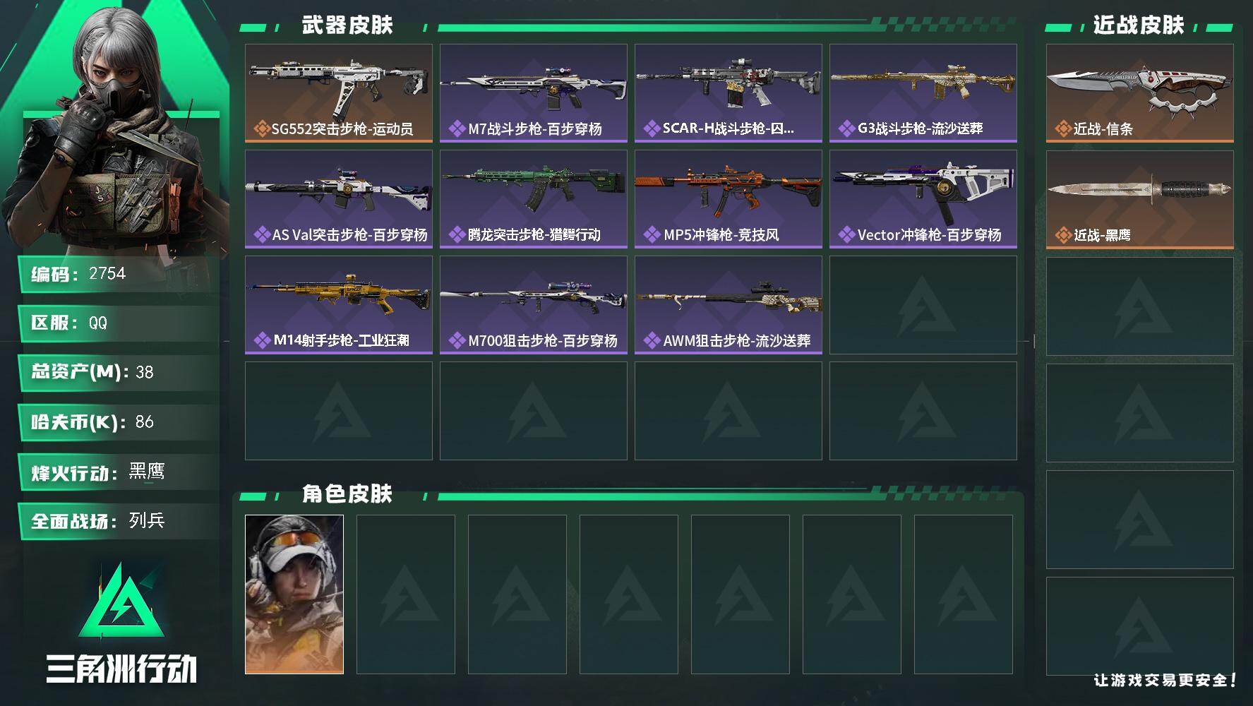 38m信条 200三角卷 露娜赛季皮 特勤处7仓7体6负重 保险2*3