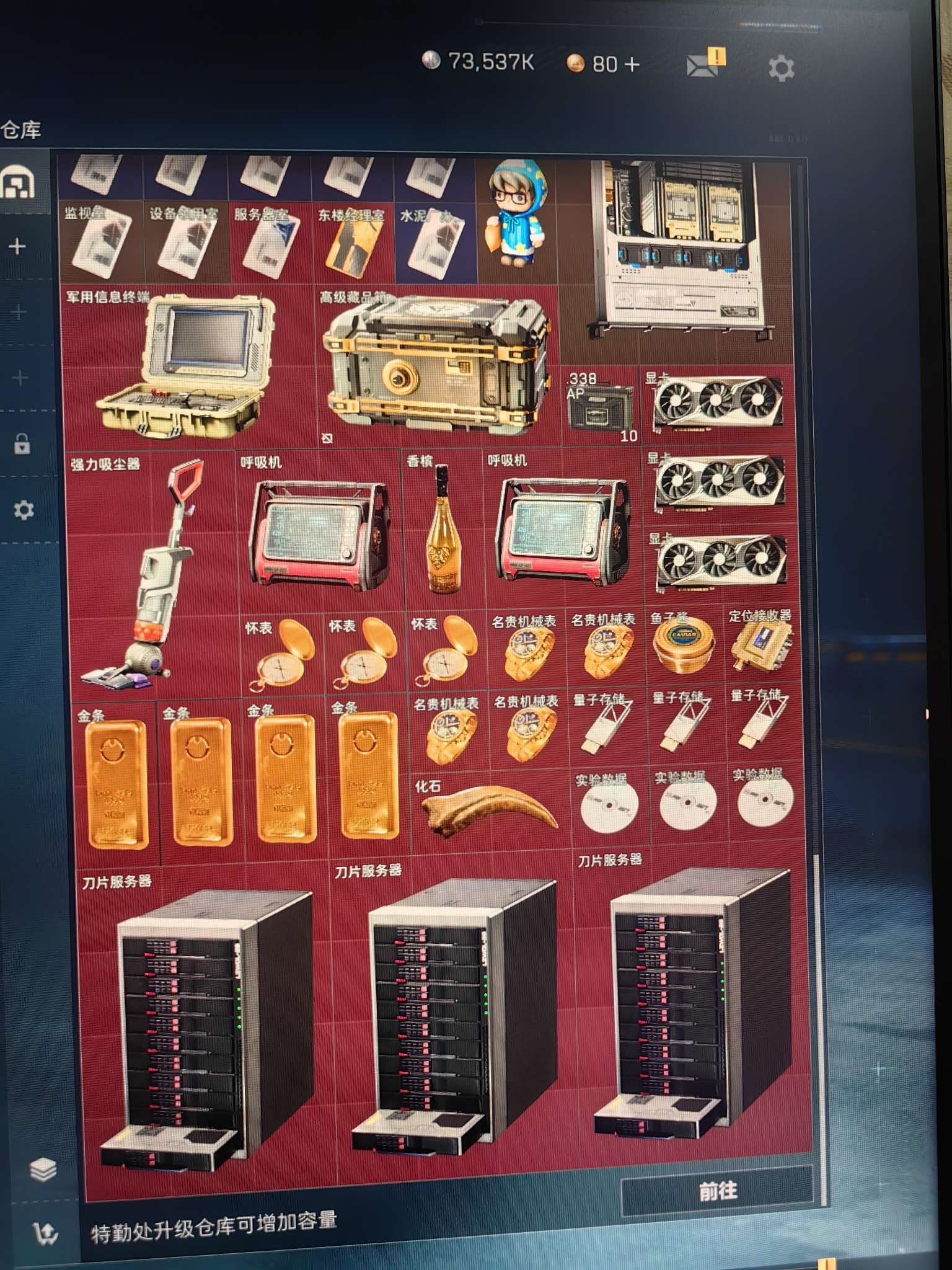 371m仓库 181m纯币 满体满负 3x3保险 70发AP 34m收藏室 仓库多红和装备 可二次