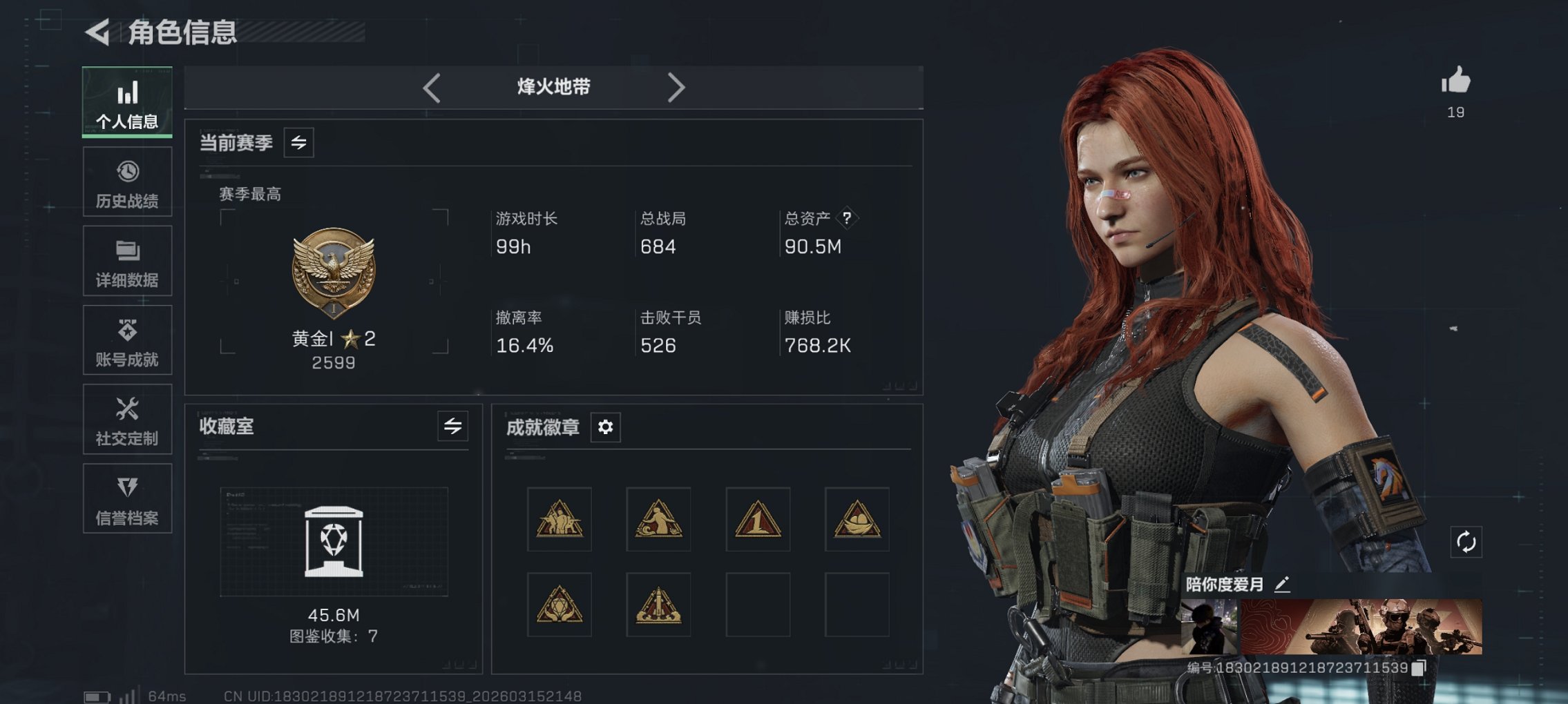 90m总资产-1900k哈夫币-60烽火等级-黑鹰-50战场等级-上等兵【干