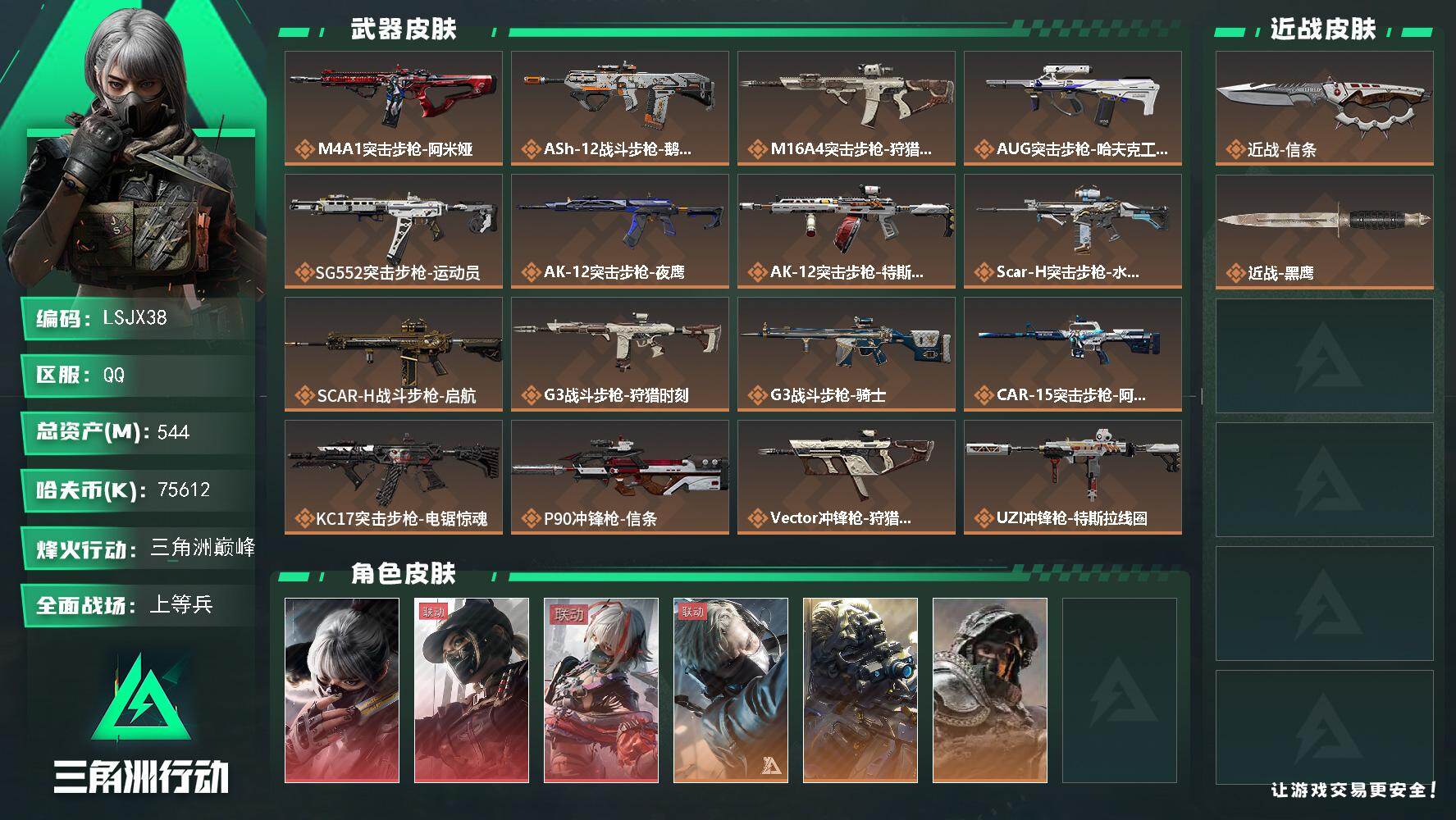 【特价出售/店主推荐】 544m总资产-75612k哈伏币-60烽火等级-三角