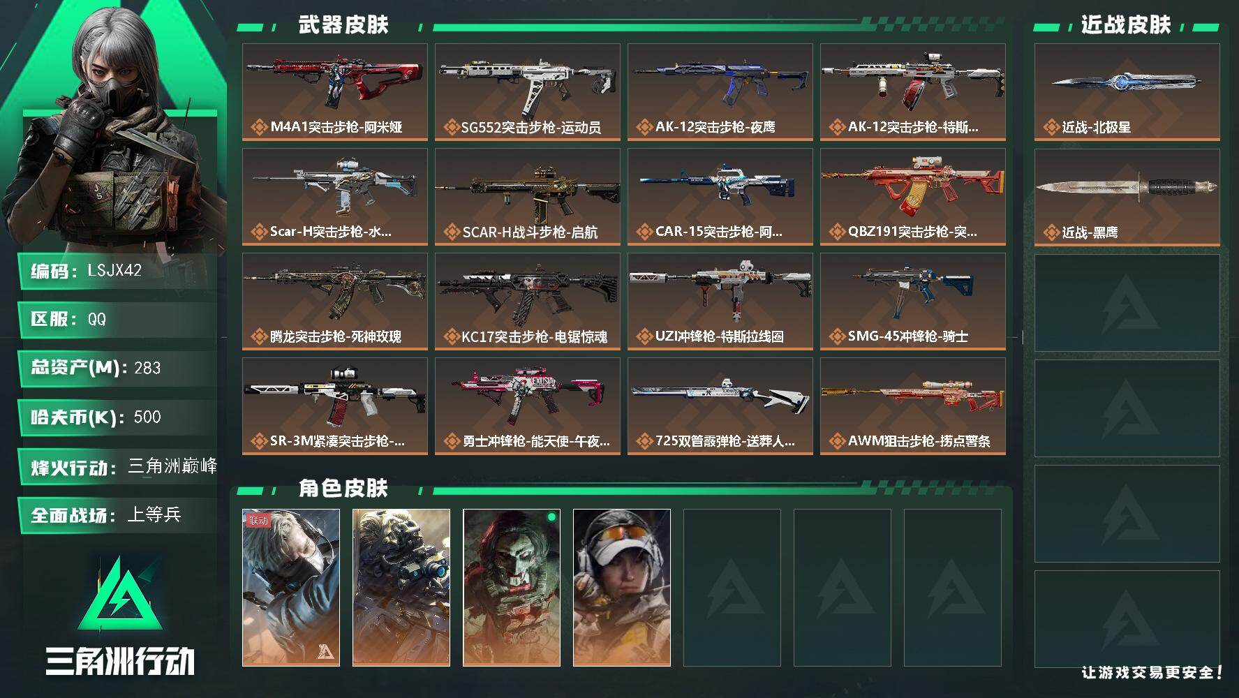【特价出售/店主推荐】 283m总资产-500k哈伏币-60烽火等级-三角洲巅