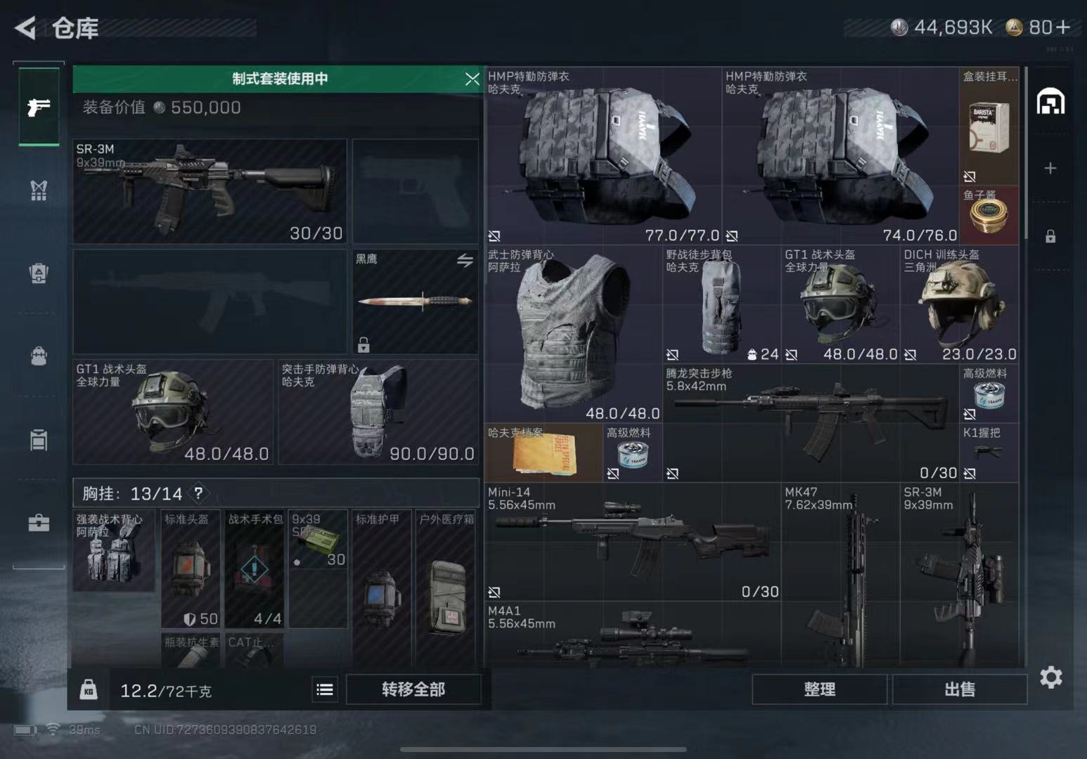 367m仓库 181m纯币 满体满负 3x3保险 70发AP 34m收藏室 仓库多红和装备 可二次