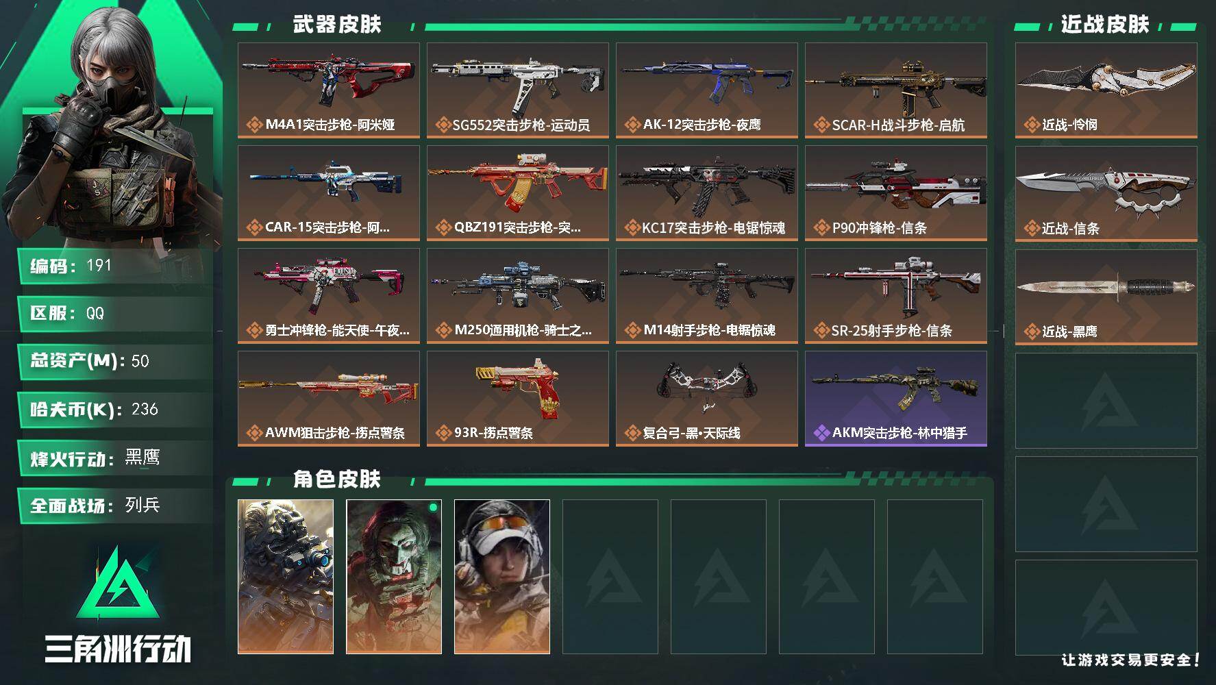 50m总资产-236k哈伏币-60烽火等级-黑鹰-20战场等级-列兵 ws00