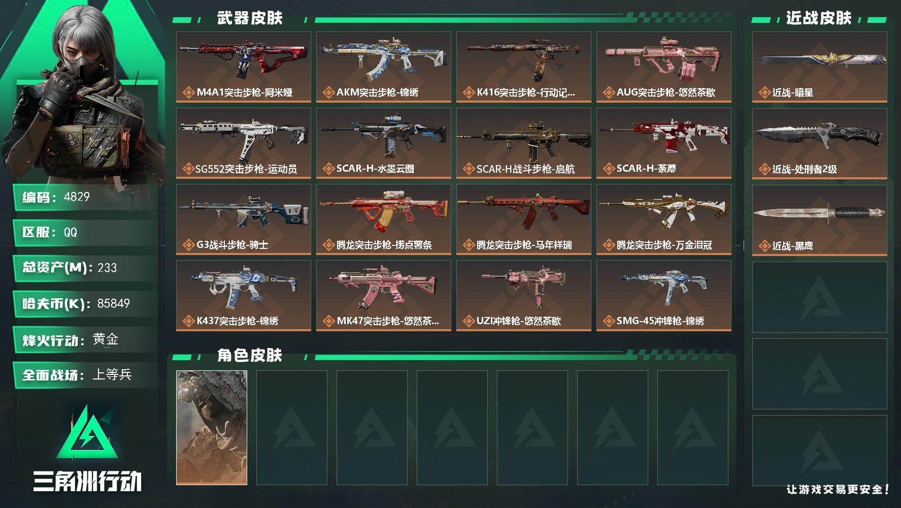 233m总资产-85849k哈夫币-60烽火等级-黄金-15战场等级-上等兵