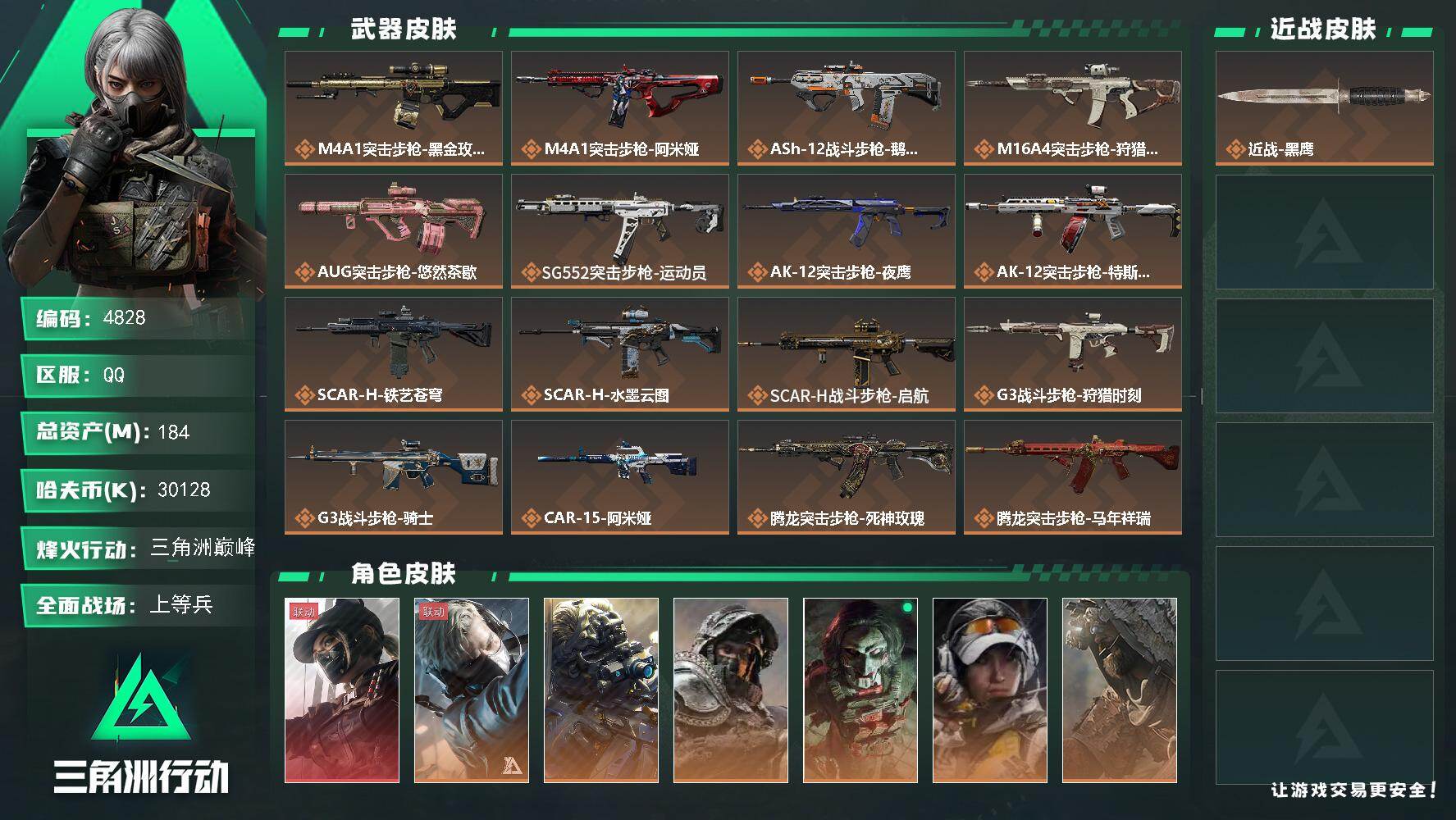 184m总资产-30128k哈夫币-60烽火等级-三角洲巅峰-50战场等级-上