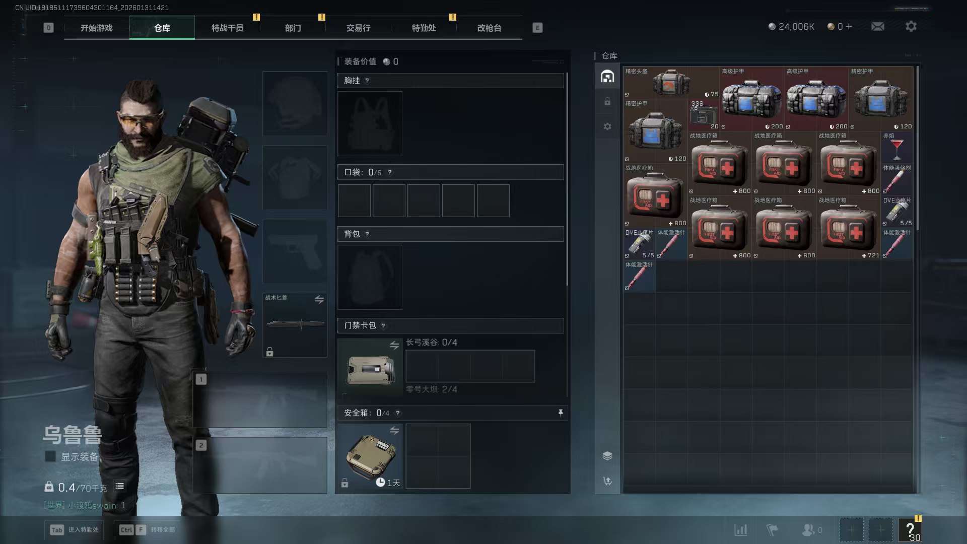 steam国服等级30,哈夫币1300万,干员解锁乌鲁鲁,10发AWM子弹,9格体验*1