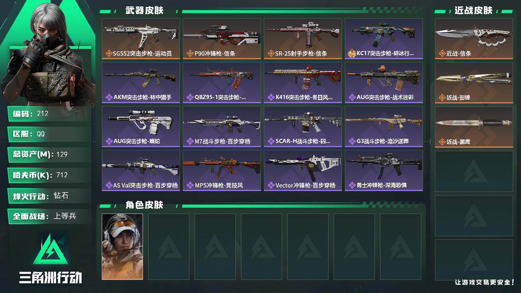 129m总资产-712k哈伏币-60烽火等级-钻石-18战场等级-上等兵 ws