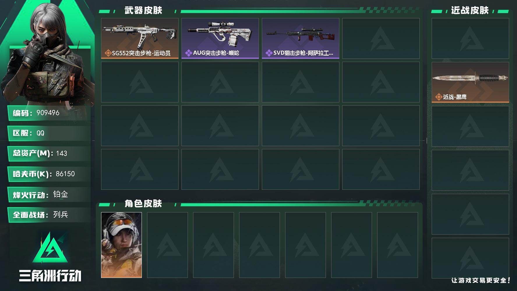 总价值143M-哈夫币86150k-烽火地带等级60