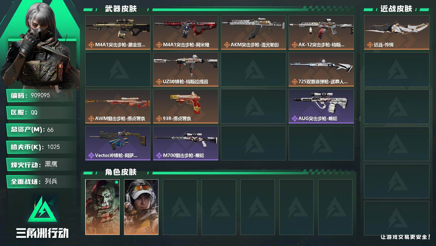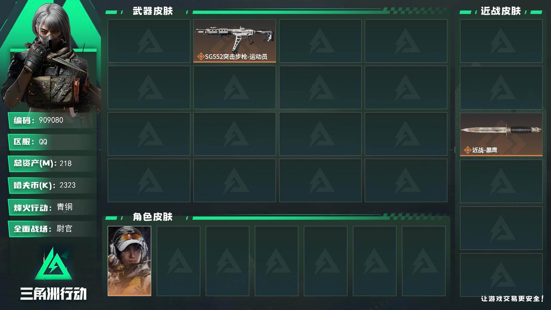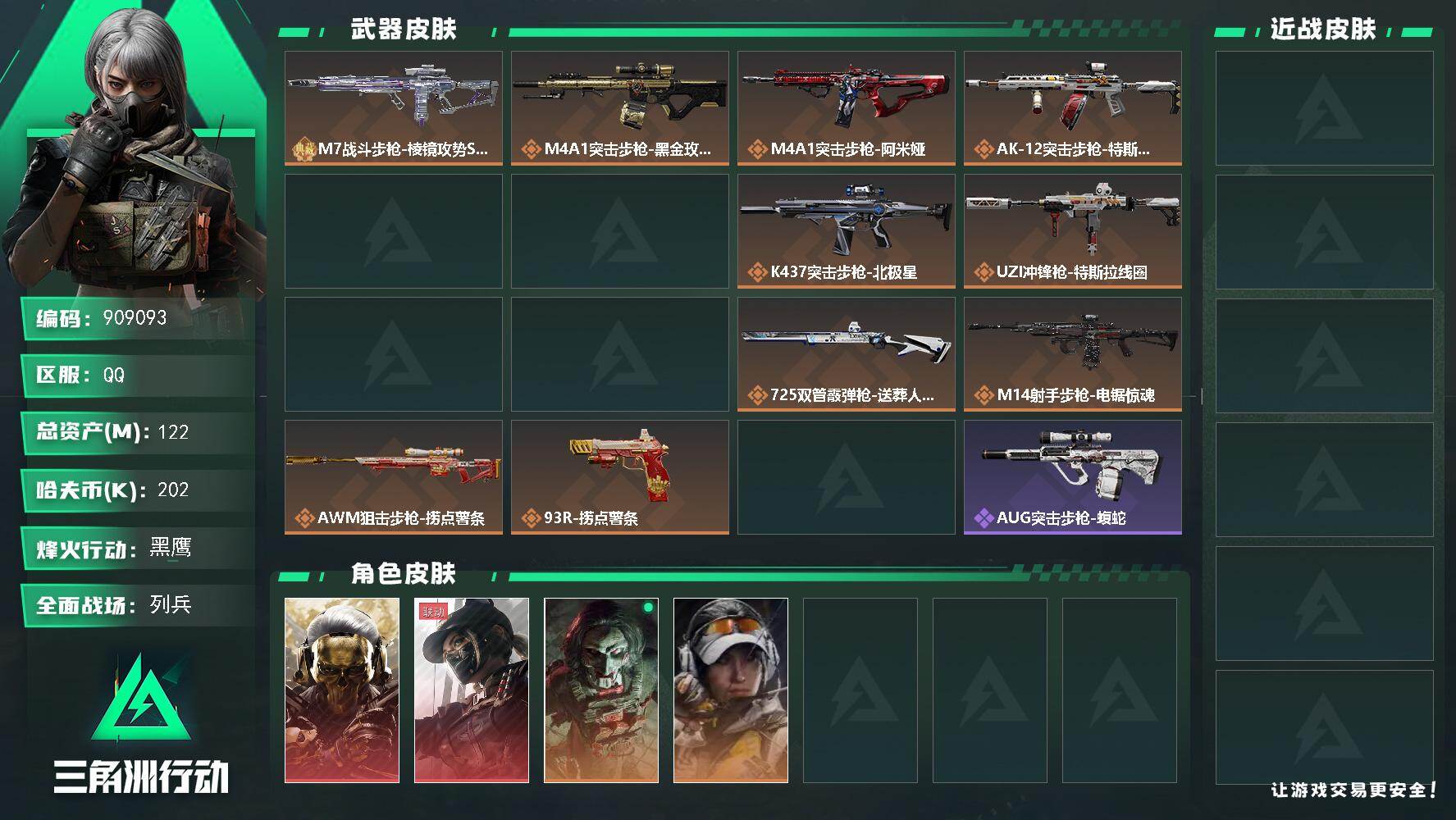90m总资产-1900k哈夫币-60烽火等级-黑鹰-50战场等级-上等兵【干