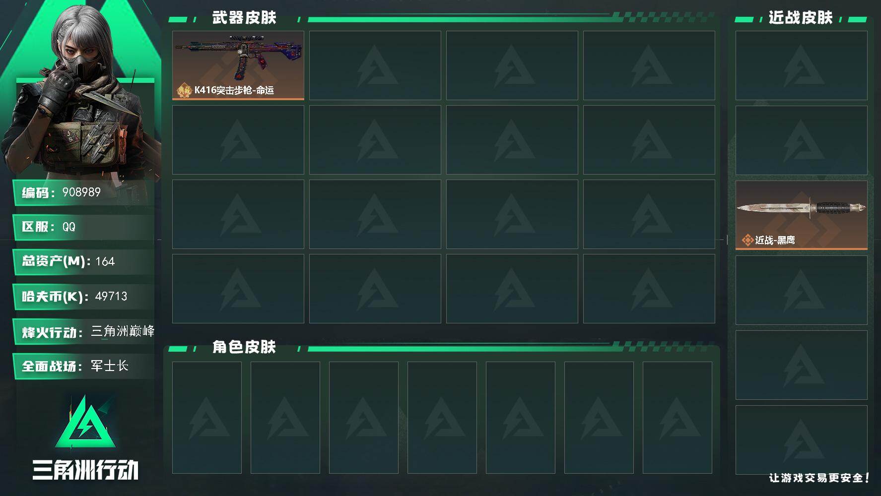 仓库5级/靶场2级/训练中心6级-总资产164m-哈夫币4971w-烽火等级:60级