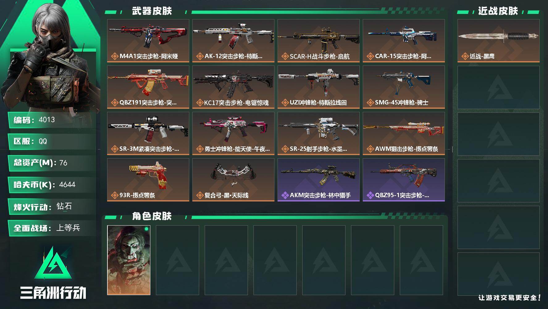 76m总资产-4644k哈伏币-60烽火等级-钻石-32战场等级-上等兵【干