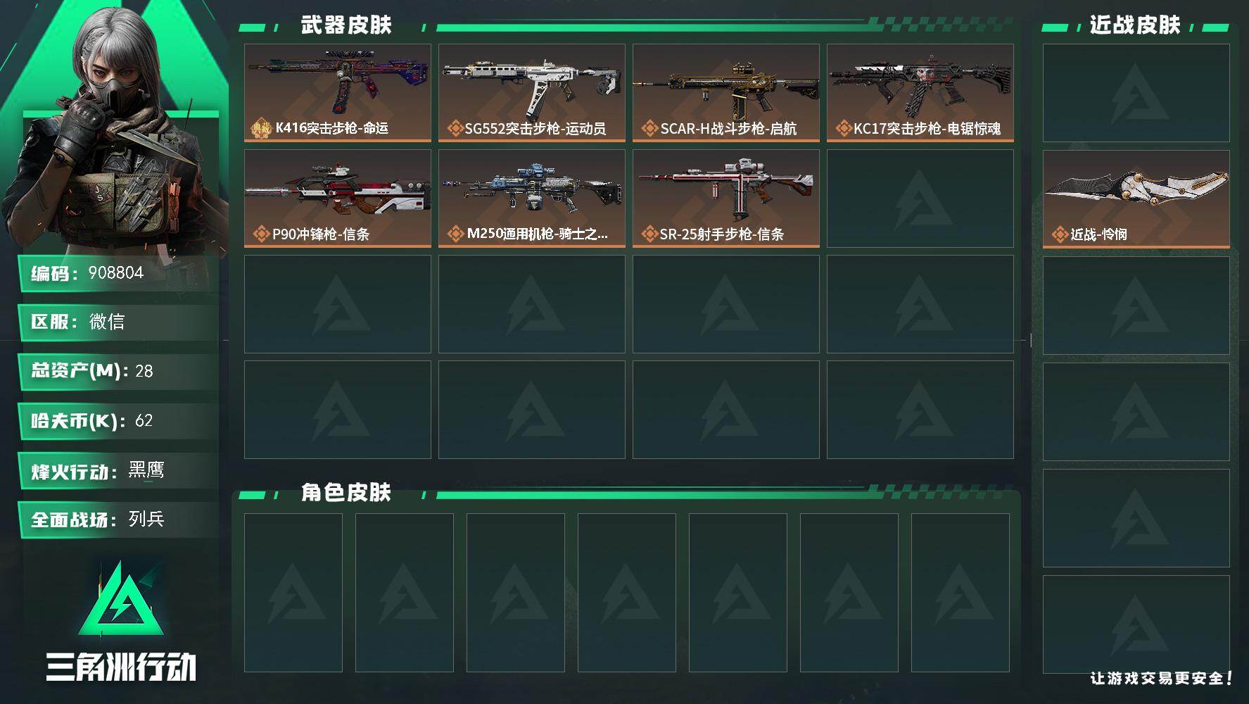 总资产:28.4M 3干员外观 3近战传说 18传说枪械 哈夫币:62.636K