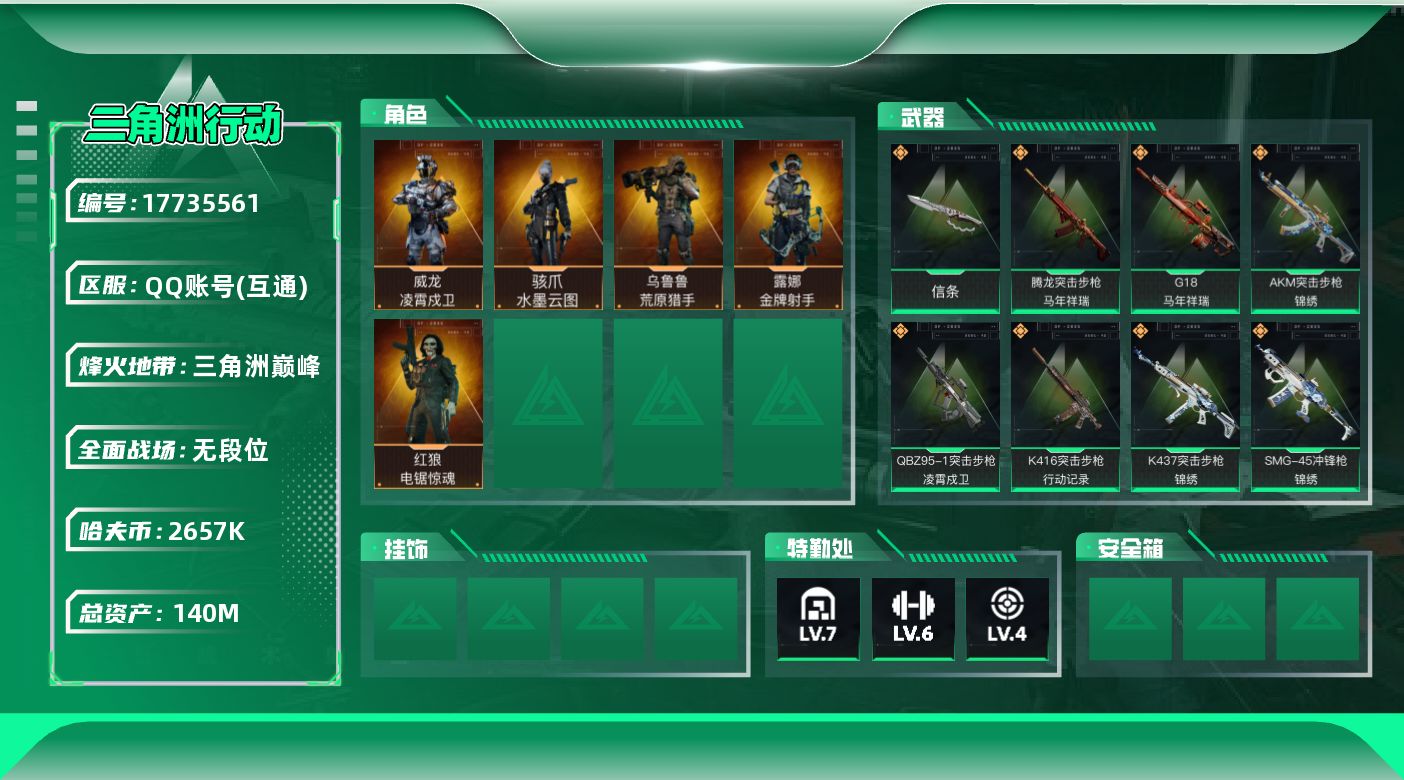 140m总资产-2657k哈夫币-60烽火等级-三角洲巅峰