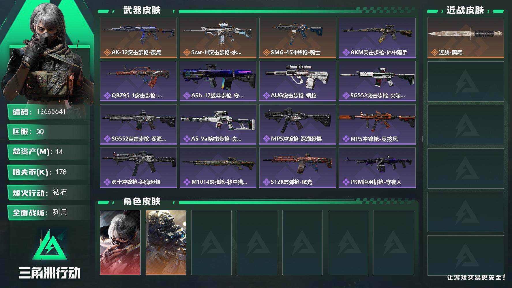 总资产(M):14M/哈夫币(K):178K/哈夫币(K):178K/全面战场