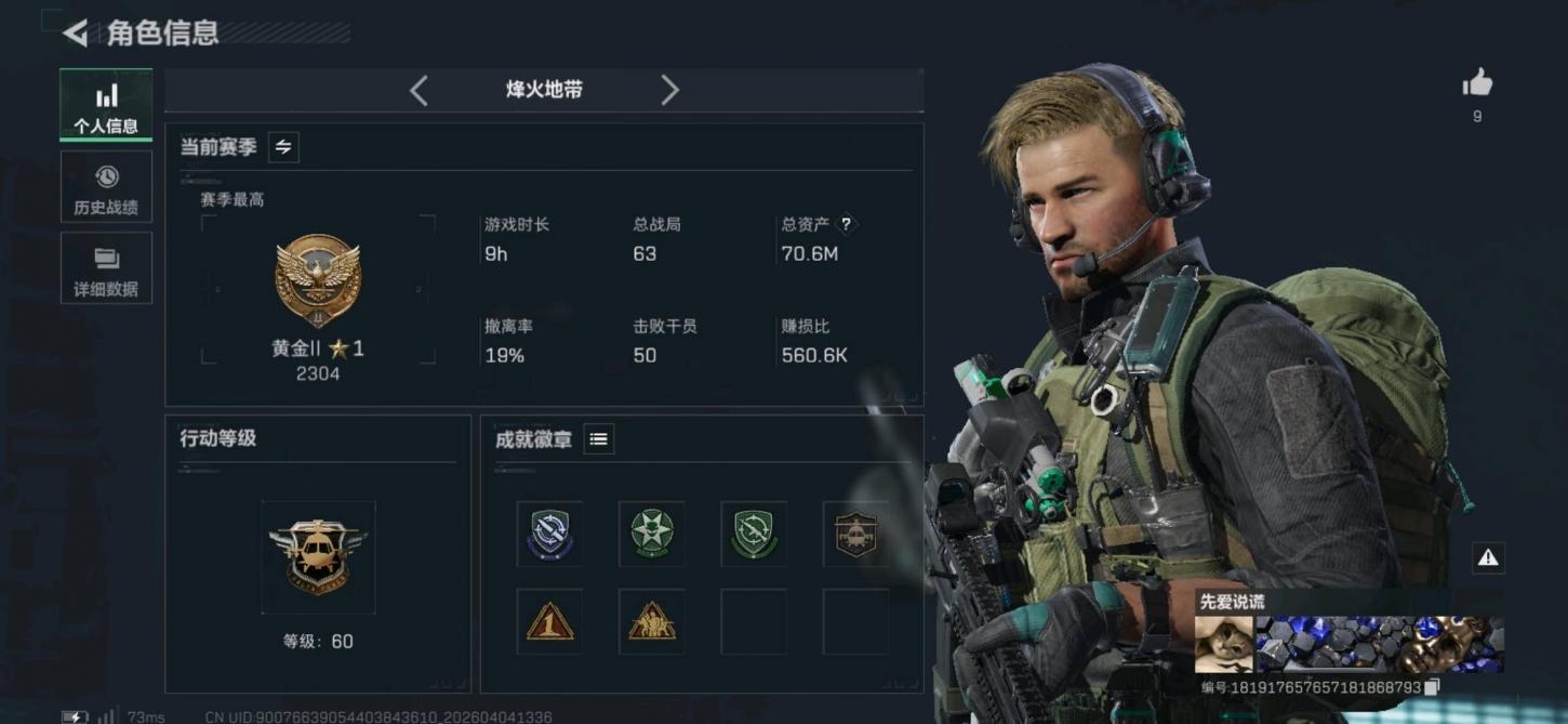 92m总资产-1189k哈夫币-60烽火等级-黑鹰-29战场等级-军士长【干
