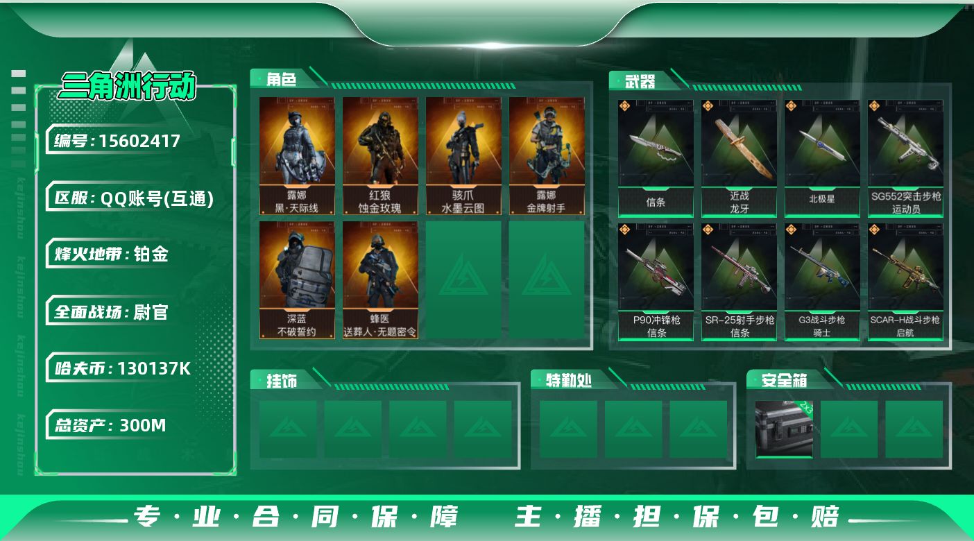 总资产(M):300M/哈夫币(K):130137K/哈夫币(K):130137K/传说枪皮数:21