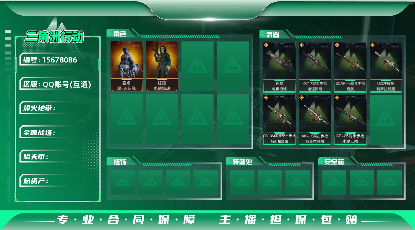 367m仓库 181m纯币 满体满负 3x3保险 70发AP 34m收藏室 仓库多红和装备 可二次
