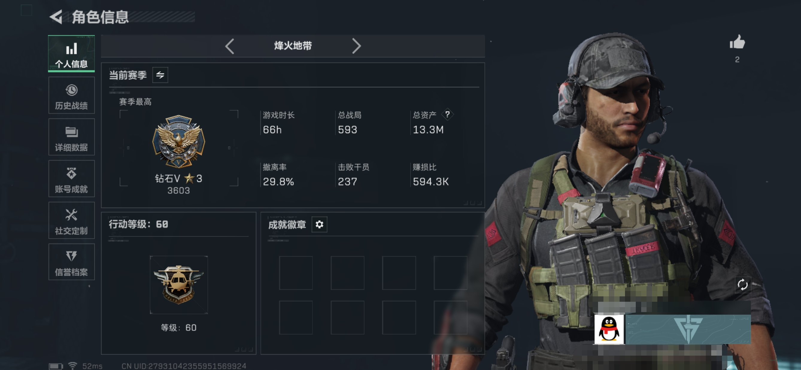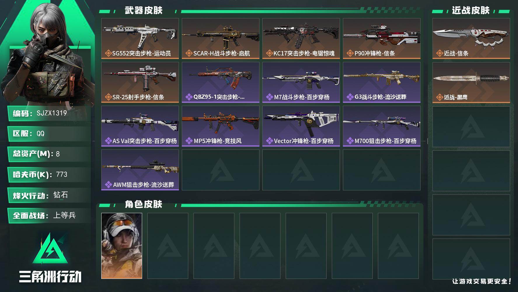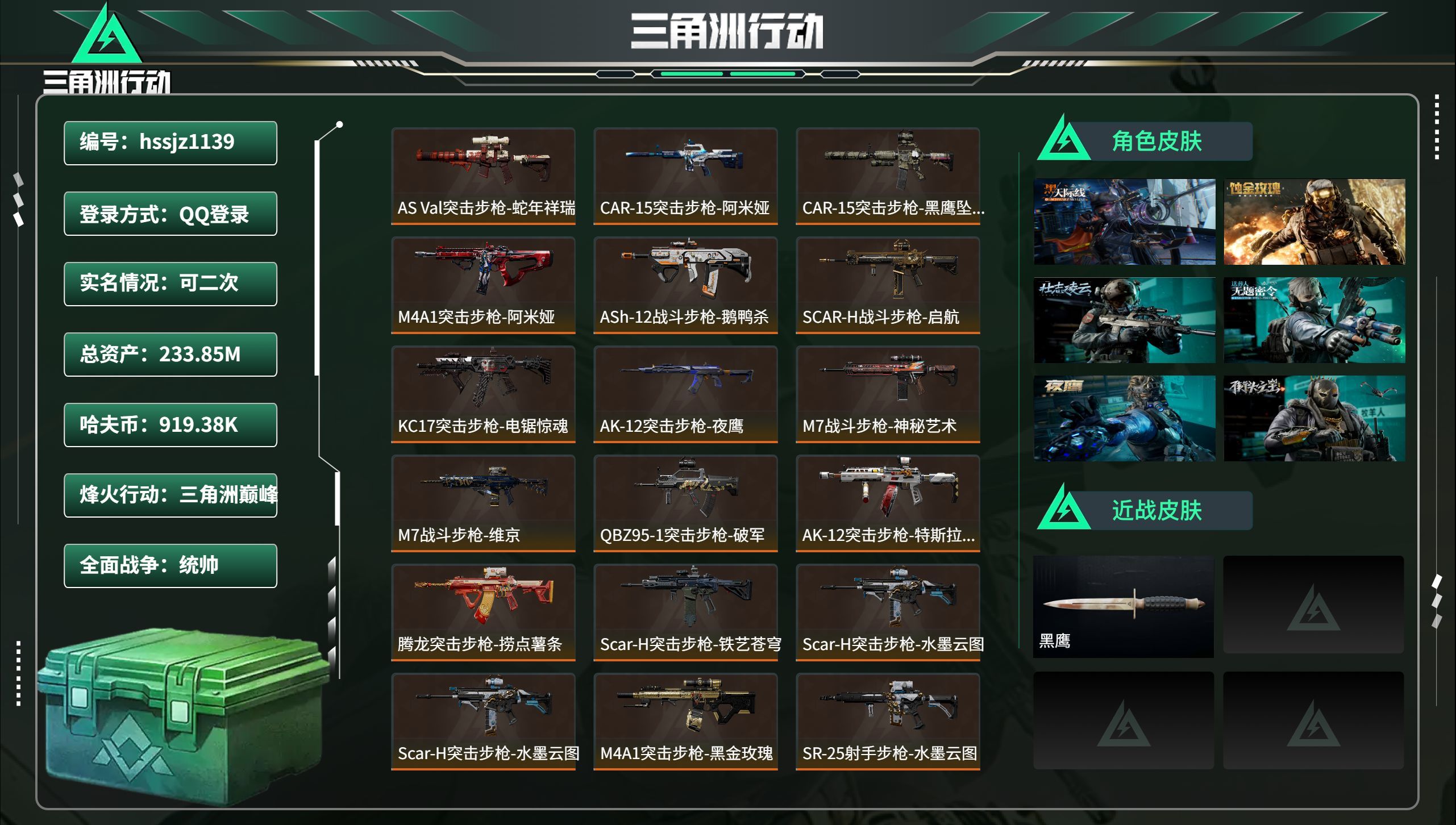 45m总资产-1867k哈伏币-60烽火等级-黑鹰-22战场等级-军士长【近