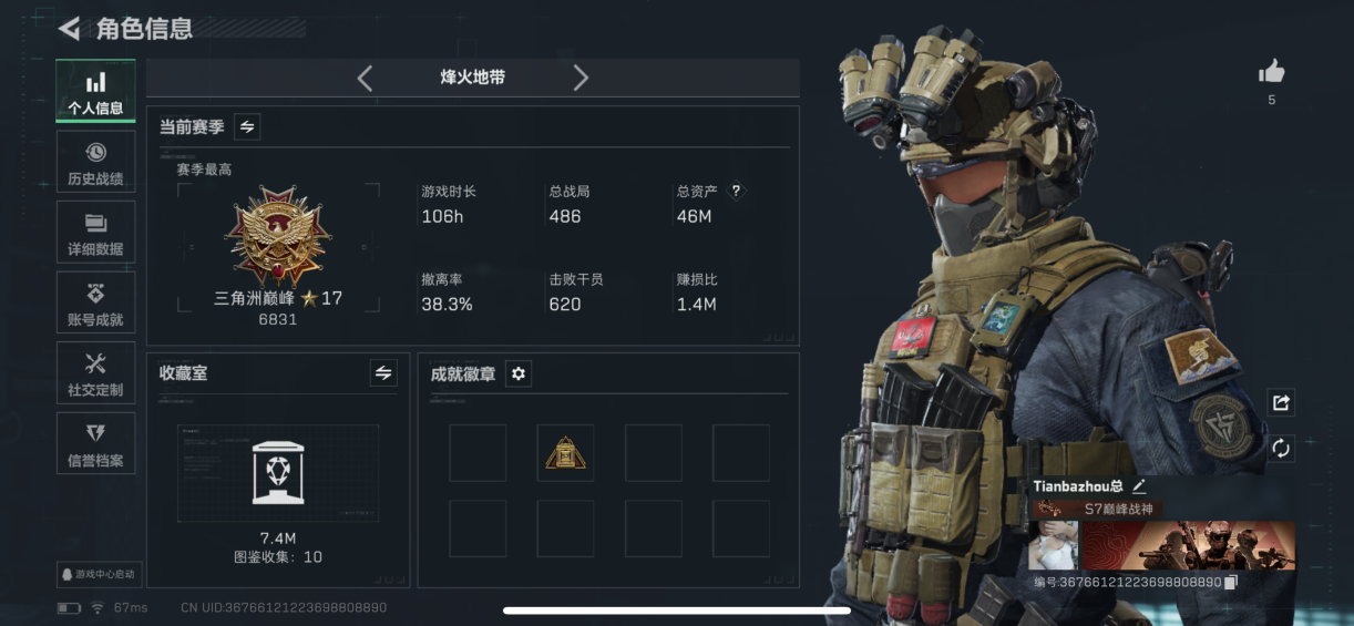 【总资产(M)】31.84【哈夫币】755k【行动等级】60